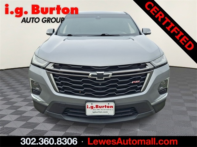 AWD. Recent Arrival! 2023 Chevrolet Traverse RS RS. Chevrolet Certified Pre-Owned Details: Powertrain Limited Warranty: 72 Month/100,000 Mile (whichever comes first) from original in-service date. Transferable Warranty. Limited Warranty: 12 Month/12,000 Mile (whichever comes first) from certified purchase date. Roadside Assistance. Vehicle History. 24 months/24,000 miles (whichever comes first) Certified Pre-Owned Scheduled Maintenance Plan and 3 days/150 miles (whichever comes first) Vehicle Exchange Program. SiriusXM 3-month trial subscription. 172 Point Inspection. Warranty Deductible: $0. Since 1908, i.G. Burton Auto Group has served Delmarva and its surrounding communities with outstanding sales and service as its longest-standing family-owned and operated dealer group. See why we proudly say, "Nobody Beats a Burton Deal! NOBODY!"