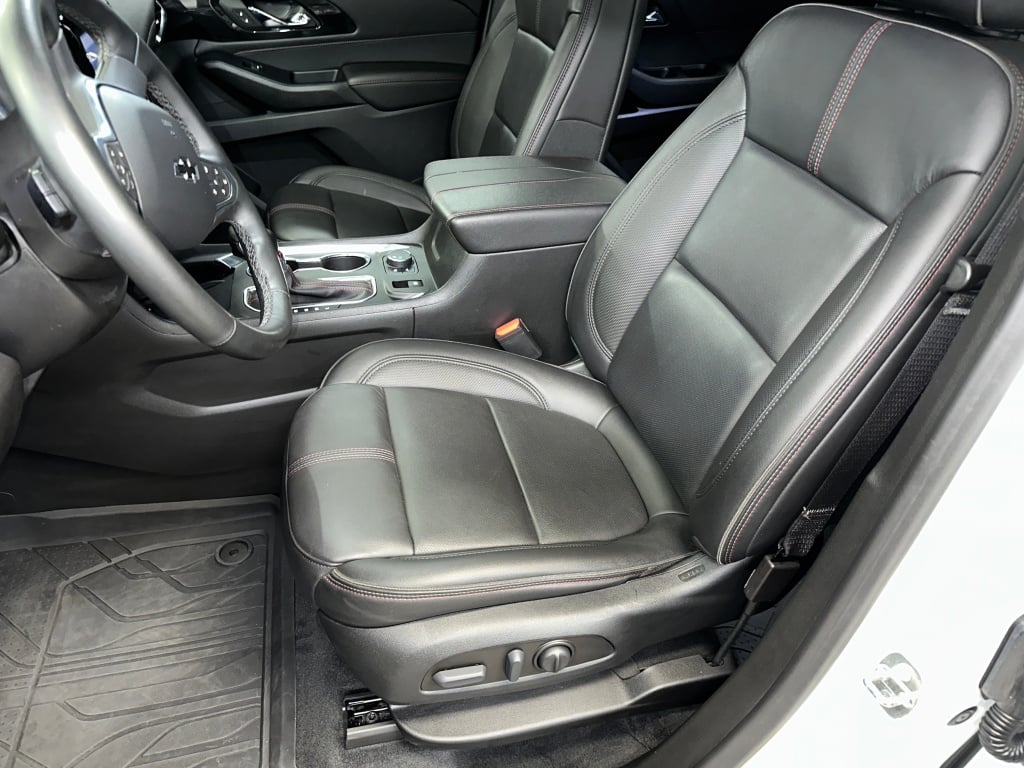 Chevrolet Certified. Heated Leather Seats, NAV, 3rd Row Seat, Rear Air, Power Liftgate, Alloy Wheels, AUDIO SYSTEM, Chevrolet Infotainment 3 Plus System, TRANSMISSION, 9-Speed Automatic, ENGINE, 3.6L V6, SIDI, VVT. Lane Keeping Assist, Blind Spot Monitor, Cross-Traffic Alert, Child Safety Locks, Electronic Stability Control, Brake Assist, 4-Wheel ABS, 4-Wheel Disc Brakes, Tire Pressure Monitoring System. Safety equipment includes Lane Keeping Assist. Chevrolet RS with Summit White exterior and Jet Black/Spice Red interior features a V6 Cylinder Engine with 310 HP at 6800 RPM.