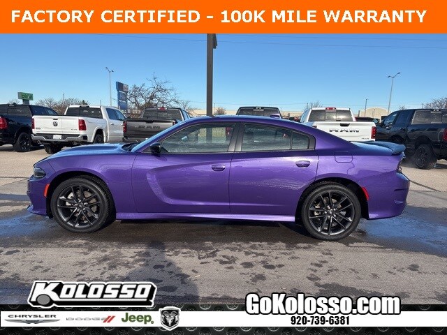 1 owner trade in Charger GT all wheel drive in Plum Crazy Purple, Blacktop Package, Power Moonroof, Cold Weather Package, Alpine 9 speaker audio system with 506 watt amp, full power package, 20" Black Noise wheels, surround sound, full power package, Apple CarPlay, heated front seats, heated steering wheel, remote start and much more. Clean Carfax and Dodge factory certified with warranty to 100,000 miles. (See salesman for details) Odometer is 10443 miles below market average! 18/27 City/Highway MPG. Why did you read this far? Just come on down and drive it already!!