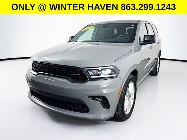 Here at Dodge Chrysler, Jeep, Ram & Fiat of Winter Haven we elevate the car buying process and create an easy and effortless process !! We advertise our best price upfront with our Finance & Trade to Save rebates where we offer the best Market Value on your trade in and fight for the best finance terms and return the savings to you as our valued customer ! This 2023 Dodge Durango GT is a striking and capable SUV that's ready to take on your daily adventures. Boasting a sleek Destroyer Gray Clearcoat exterior and a well-appointed interior, this Durango GT is the perfect blend of style and substance. Under the hood, you'll find a powerful 3.6L V6 24V VVT engine paired with an 8-Speed Automatic transmission, delivering an impressive 19 city / 26 highway MPG. With rear-wheel drive, this Durango GT offers a dynamic and responsive driving experience, whether you're navigating city streets or exploring the open road. The Durango GT comes equipped with a wealth of premium features that will elevate your driving experience. Enjoy the convenience of a power liftgate, the comfort of heated front seats and a heated steering wheel, and the connectivity of Apple CarPlay and Android Auto. The advanced safety technologies, including ParkView Rear Back-Up Camera and Electronic Stability Control, provide added peace of mind behind the wheel. Designed to accommodate your growing family or active lifestyle, the Durango GT offers seating for up to seven passengers and a spacious cargo area. The split-folding rear seats provide versatile storage options, making it easy to adapt to your needs. Discover the perfect balance of style, performance and features.