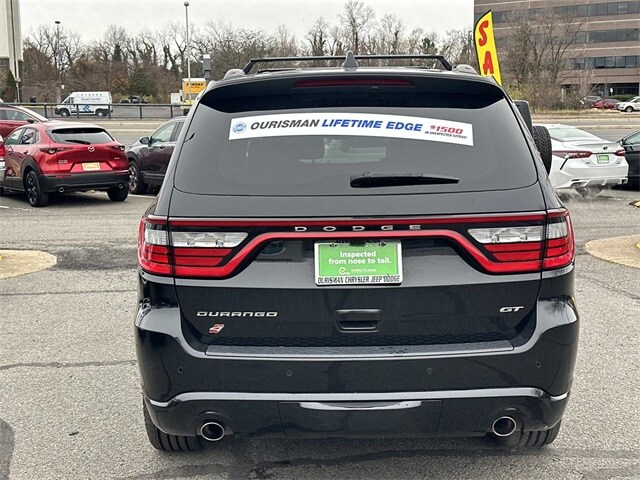 Certified. 2023 Dodge Durango GT Plus DB Black Crystal Clearcoat FCA US LLC Certified Pre-Owned Certified, AWD, 1-Year Trial (Registration Required), 10.1" Touchscreen Display, 115V Auxiliary Power Outlet, 180 Amp Alternator, 3rd row seats: split-bench, 4-Wheel Disc Brakes, 4G LTE Wi-Fi Hot Spot, 6 Speakers, 7 & 4 Pin Wiring Harness, ABS brakes, Adaptive Cruise Control w/Stop, Air Conditioning, Alloy wheels, AM/FM radio: SiriusXM, Apple CarPlay, Apple CarPlay/Android Auto, Auto-Dimming Exterior Driver Mirror, Auto-dimming Rear-View mirror, Automatic temperature control, Black Roof Rails, Brake assist, Bumpers: body-color, Class IV Receiver Hitch, Cloth Bucket Seats w/Shift Insert, Compass, Connected Travel & Traffic Services, Cruise control, Delay-off headlights, Disassociated Touchscreen Display, Driver door bin, Driver vanity mirror, Dual front impact airbags, Dual front side impact airbags, Dual Remote USB Port - Charge Only, Electronic Stability Control, Exterior Mirrors w/Heating Element, Exterior Mirrors w/Memory, Exterior Mirrors w/Supplemental Signals, Floor Console w/Leather Armrest, Four wheel independent suspension, Front anti-roll bar, Front Bucket Seats, Front Center Armrest w/Storage, Front dual zone A/C, Front License Plate Bracket, Front reading lights, Full Speed Forward Collision Warning Plus, Fully automatic headlights, Garage door transmitter, Gloss Black Exterior Mirrors, Google Android Auto, GPS Antenna Input, GPS Navigation, HD Radio, Heated door mirrors, Heated front seats, Heated Second Row Seats, Heated steering wheel, Heavy-Duty Engine Cooling, Illuminated entry, Integrated Center Stack Radio, Integrated Roof Rail Crossbars, Integrated Voice Command w/Bluetooth, Knee airbag, Leather steering wheel, Leather Trimmed Bucket Seats, Leather Wrapped Door Panels, LED Auxiliary Low Beam & Turn Signal, Low tire pressure warning, Manufacturer's Statement of Origin, Occupant sensing airbag, Outside temperature display, Overhead airbag, Overhead console, Panic alarm, ParkView Rear Back-Up Camera, Passenger door bin, Passenger vanity mirror.