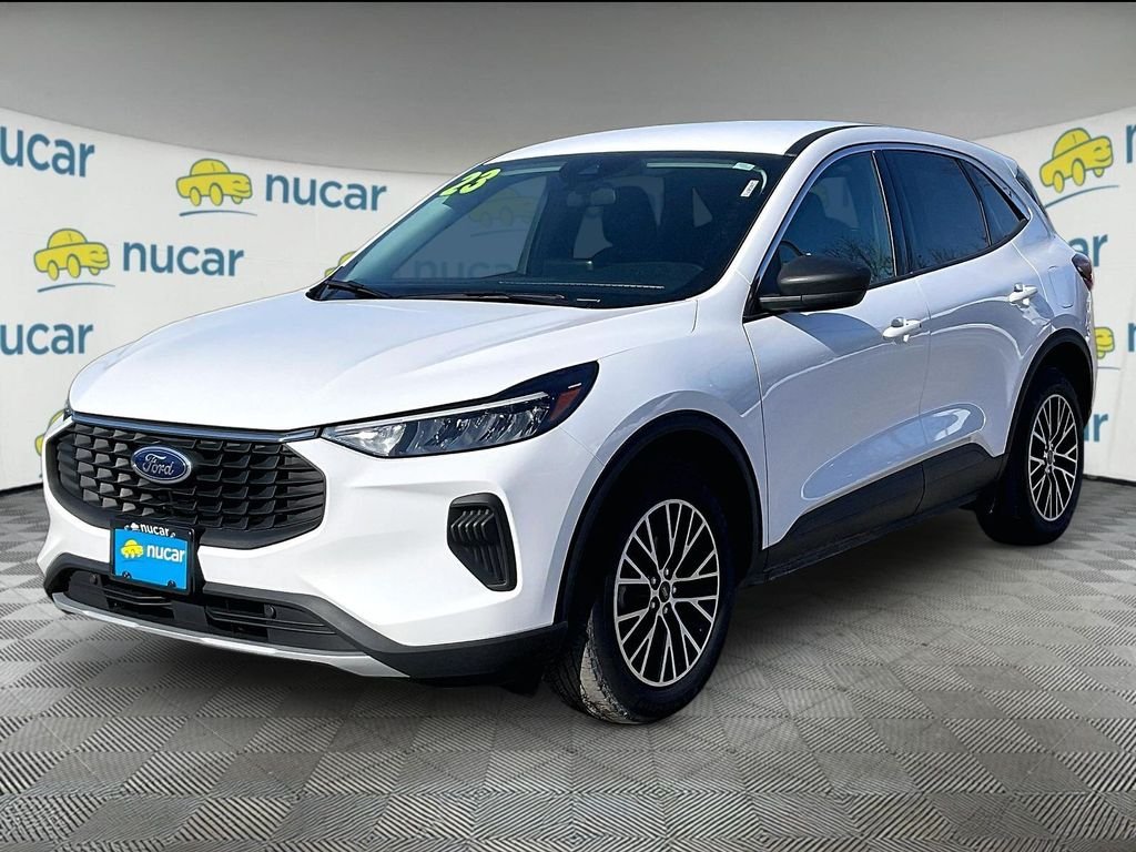 Nucar Certified Pre-Owned vehicle! One owner, service records available, Bluetooth/hands free smartphone integration, back up camera, extra clean, fully detailed and serviced, 2023 Ford Escape Hybrid, all wheel drive, blind spot monitoring. Escape Hybrid Active, 4D Sport Utility, 2.5L iVCT, eCVT, AWD, Oxford White, Ebony with Unique Cloth Front Bucket Seats, AM/FM radio: SiriusXM, Auto High-beam Headlights, Equipment Group 200A, Exterior Parking Camera Rear, Front dual zone A/C, Fully automatic headlights, Heated front seats, Heated steering wheel, Power driver seat, Power Liftgate, Remote keyless entry, SYNC 4, Unique Cloth Front Bucket Seats, Wheels: 17" Shadow Silver-Painted Aluminum. 2023 Ford Escape Hybrid Active AWD. Oxford White. Carfax One-Owner. Stop by Nucar Automall of Tilton, located at 40 E. Main St in Tilton, NH. We have the best selection of quality pre-owned vehicles in all of central NH. Need financing? We have financing available for all credit types. Our goal is 100% credit approval. Call 603-286-3141 today to schedule your no-obligation test drive. Don't forget to ask about our free home delivery service!