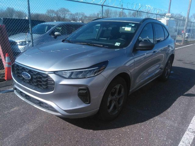 This 2023 Ford Escape ST-Line in sleek Silver offers an exceptional blend of style, technology, and performance. Powered by a turbocharged 1.5L EcoBoost engine paired with an 8-speed automatic transmission and all-wheel drive, this Escape delivers an exhilarating driving experience while maintaining impressive fuel efficiency of 26 city/32 highway MPG. The ST-Line trim elevates the Escape's dynamic presence with unique exterior styling cues, including 18-inch Rock Metallic painted aluminum wheels and a sporty rear spoiler. Inside, the Escape ST-Line surrounds you in premium materials and advanced features, including a SYNC 4 infotainment system, heated front seats, and a heated steering wheel for added comfort. Safety and convenience are also at the forefront, with standard driver-assist technologies like the Blind Spot Monitor, Auto High-beam Headlights, and a Rear Camera to help you navigate with confidence. The spacious interior offers ample room for passengers and cargo, making the Escape ST-Line an exceptional choice for your daily commute or weekend adventures.