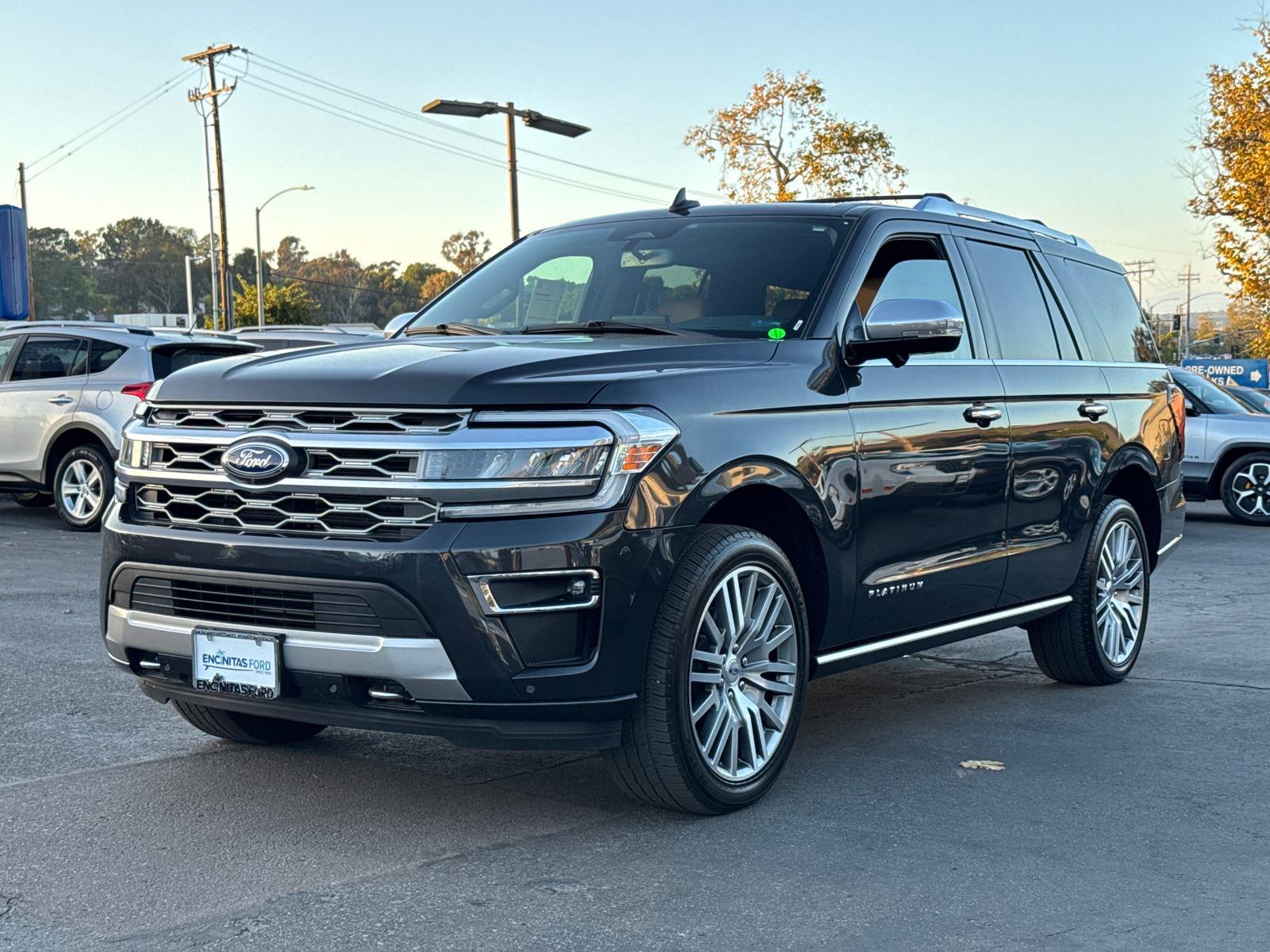 This 2023 Ford Expedition Plat, has a Dark Matter Gray exterior and Carmelo interior color with only 26,018 miles. Stock Number 495364. You can connect with us by calling. No Accidents! One Owner! At Encinitas Ford, we’re here to Serve you! Our staff is 100% dedicated to customer satisfaction and we understand that you need clear, transparent information throughout the Car buying process. With our live market pricing philosophy, we offer the right cars at the right price, and the transparency to back it up! Take advantage of our attractive Low-rate financing options. Our access to various Credit Unions and National Banks can provide financing for most credit levels. We can tailor a finance package to Fit your needs. To get started, complete our secure online credit application.