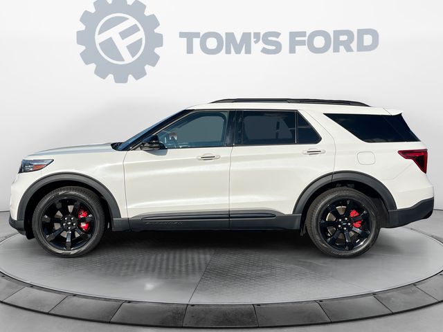 2023 Ford Explorer ST 4WD. Purchased & maintained here at Toms Ford. Ford Certified. CARFAX One-Owner. Clean CARFAX. We make car buying easy, simple, and stress-free! We spend the time and effort to inspect and recondition our cars to a higher standard than you'll see elsewhere. For more used inventory check out https://www.tomsford.com/used-vehicles/ The 2023 Ford Explorer ST stands out as the performance-driven variant of Ford’s popular three-row SUV, delivering an exciting blend of power, precision, and everyday practicality. Designed for drivers who want family-friendly versatility without sacrificing sport-oriented capability, the Explorer ST showcases a dynamic personality both inside and out. At the heart of the 2023 Explorer ST is a 3.0-liter EcoBoost V6 engine producing a commanding 400 horsepower and 415 lb-ft of torque, paired with a smooth and responsive 10-speed automatic transmission. This powertrain propels the ST with impressive authority, offering strong acceleration and confident highway passing power. The available Intelligent 4WD system, combined with a sport-tuned suspension, sharp steering response, and upgraded brakes, enhances control and stability, making the ST equally enjoyable on curving backroads as it is during daily commutes. Visually, the Explorer ST distinguishes itself with bold, athletic styling. Signature ST badging, a black mesh grille, dual exhaust outlets, unique 20- or 21-inch wheels, and sleek LED lighting give the SUV a commanding presence. Inside, the cabin balances sporty refinement and comfort with leather-trimmed seating, ST logo embossing, and optional leather sport buckets. The interior is spacious and flexible, offering plenty of room for passengers and cargo across its three rows. Technology in the 2023 Explorer ST is both modern and intuitive. The SYNC 3 or available SYNC 4 infotainment system, high-resolution touchscreen, Apple CarPlay, Android Auto, Wi-Fi connectivity, premium audio options, and comprehensive Ford Co-Pilot360 driver-assist features all contribute to a connected and confident driving experience. Combining thrilling performance, upscale styling, and family-friendly functionality, the 2023 Ford Explorer ST delivers an elevated SUV experience for drivers who want power and practicality in one compelling package.