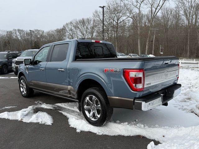 3.5L PowerBoost Full-Hybrid V6, 4WD, 20" Machined-Aluminum Wheels, 360 Degree Camera, 4-Wheel Disc Brakes, 4x4 FX4 Off-Road Bodyside Decal, 8 Speakers, 8.4 -Inch Display Audio w/ Electrostatic Touchscreen, ABS brakes, Adjustable pedals, Air Conditioning, Alloy wheels, AM/FM radio: SiriusXM with 360L, Auto High-beam Headlights, Auto Start-Stop Removal (DISC), Auto tilt-away steering wheel, Auto-dimming door mirrors, Auto-dimming Rear-View mirror, Automatic temperature control, Bed Utility Package, Bedliner/Ford Factory Spray-In Bedliner, BoxLink, Brake assist, Bright Belt Moldings, Center High-Mounted Stop Lamp CHMSL Camera Removal, Chrome Door Handles w/Body-Color Strap, Chrome Skull Caps on Exterior Mirrors, Class IV Trailer Hitch Receiver, Compass, Delay-off headlights, Driver door bin, Driver vanity mirror, Dual front impact airbags, Dual front side impact airbags, Dual-Pane Paoramic Sunroof, Electronic Locking w/3.31 Axle Ratio, Electronic Stability Control, Emergency communication system: SYNC 4 911 Assist, Equipment Group 601A High, Extended Range 36 Gallon Fuel Tank, Exterior Parking Camera Rear, Fog Lamps, Front & Rear Chrome Bumpers, Front anti-roll bar, Front Bucket Seats, Front Center Armrest, Front dual zone A/C, Front reading lights, Front wheel independent suspension, Fully automatic headlights, FX4 Off-Road Package, Garage door transmitter, Genuine wood console insert, Genuine wood dashboard insert, Genuine wood door panel insert, Heated door mirrors, Heated rear seats, Heated Second Row Seats/Heated Rear Seats, Hill Descent Control, Illuminated entry, Inclination/Intrusion Sensor Removal, Integrated Trailer Brake Controller, King Ranch Chrome Appearance Package, King Ranch Leather Bucket Seats, LED Box Lighting, LED Sideview Mirror Spotlights, Max Trailer Tow Package, Memory seat, Monotube Rear Shocks, Multi-Contour Driver & Passenger Seats, Multicontour Seats w/Active Motion Removal, Occupant sensing airbag, Off-Road Tuned Front Shock Absorbers, Outside temperature display, Overhead airbag, Overhead console, Panic alarm, Passenger door bin, Passenger vanity mirror, Pedal memory, Power door mirrors, Power driver seat, Power passenger seat, Power steering, Power Tailgate, Power windows, Power-Deployable Running Boards, Pro Power Onboard - 7.2KW, Pro Trailer Backup Assist & Pro Trailer Hitch Assist, Radio: B&O Sound System by Bang & Olufsen, Radio: B&O Unleashed Sound System by Bang & Olufsen, Rain sensing wipers, Rear reading lights, Rear seat center armrest, Rear step bumper, Rear window defroster, Remote keyless entry, Rock Crawl Mode, Security system, Speed control, Speed-sensing steering, Split folding rear seat, Steering Wheel Heat Removal (DISC), Steering wheel memory, SYNC 4 w/Enhanced Voice Recognition, Tachometer, Tailgate Step w/Tailgate Work Surface, Telescoping steering wheel, Tilt steering wheel, Tire Pressure Monitoring System, Traction control, Tray Style Floor Liner, Trip computer,