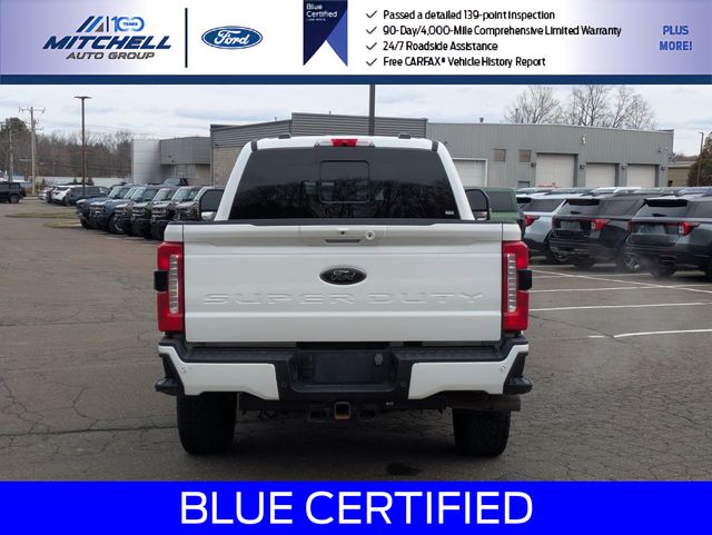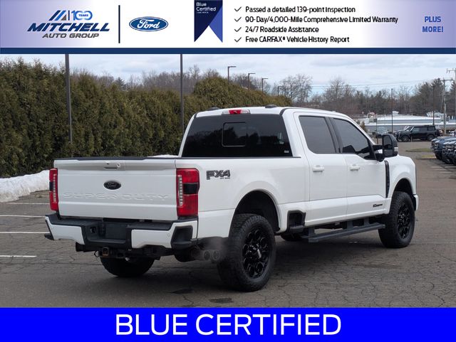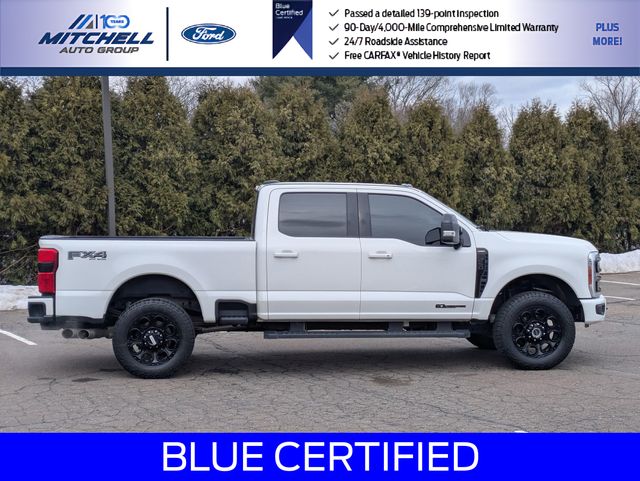 2023 Ford F-250SD Lariat. Ford Blue Certified Details: Limited Warranty: 3 Month/4,000 Mile (whichever comes first) after new car warranty expires or from certified purchase date. Transferable Warranty. 139 Point Inspection. Warranty Deductible: $100. Vehicle History. Roadside Assistance. and 11,000 FordPass Rewards Points to use toward first maintenance visit. Ford Blue Certified Certified, 4WD, Blue Certified Pre-Owned Ford F-250 Lariat Super Duty! Part of the Ford Blue Advantage Program! Located at Mitchell Selig Ford in Windsor, CT at 801 Bloomfield Ave, right off Exit 37 via Route 91! Contact us today at 860-688-3651 or online at MitchellSeligFord.com! Brand new front brakes including new front brake rotors and new front brake pads! Brand new rear brakes including new rear brake rotors and new rear brake pads! 4-Way Adjustable Headrests, 410 Amp Dual Alternators, 6" Ebony Black Angular Running Boards, Adjustable pedals, Alloy wheels, Auto High-beam Headlights, Automatic temperature control, Black Appearance Package, BLIS w/Cross-Traffic Alert, Body Color Front & Rear Bumpers, Dual 68 AH/65 AGM Batteries, Ebony Black Painted Front Grille Bars, Ebony Black Painted Mirror Caps, Electronic-Locking w/3.31 Axle Ratio, Engine Block Heater, Exterior Parking Camera Rear, F-250 >10K GVWR Package, Flow-Through Console, Front dual zone A/C, Front fog lights, Front Leather-Trimmed 40/Console/40 Seats, Front Sensing System, FX4 Off-Road Package, Head-Up Display, Heated door mirrors, Heated front seats, Heated rear seats, Heated steering wheel, Hill Descent Control, Lane-Keeping System, Lariat Ultimate Package, Leather steering wheel, LED Roof Clearance Lights, Memory seat, Navigation system: Connected Navigation, Off-Road Specifically Tuned Shock Absorbers, Order Code 608A, Pedal memory, Power door mirrors, Power driver seat, Power passenger seat, Power windows, Power-Deployable Running Boards, Pre-Collision Assist, Pro Trailer Backup Assist Assist Pro.