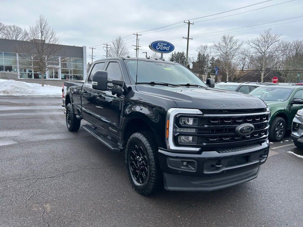 If you are looking for a powerful truck that is loaded with features, this stunning, Certified F-250 Lariat Ultimate FX4 Diesel is ready to provide impressive luxury, performance and capability. This One Owner, Local Trade-in has a clean CarFax with an extensive Ford dealership maintenance history. A massive 6.7L Power Stroke Diesel provides 475 HP and an incredible 1050 lb-ft of torque. The FX4 Off-Road Package tackles the toughest conditions with an Electronic-locking rear axle, Hill descent control, Off-road tuned front shock absorbers, Rugged Skid plates protect the fuel tank, transfer case, and front differential. The dramatic Black Appearance Package turns heads with 20 inch Gloss Black Alloy Wheels, a Black Grille, Black Running Boards, and additional Black Accents on the exterior and interior. A massive Twin Panel Moonroof provides abundant light and fresh air. The Lariat Ultimate Package impresses with a premium Bang & Olufsen Unleashed Audio System with HD Radio and 18 speakers including a subwoofer, Power Running Boards, Tailgate Step, Tow Technology Package, Upfitter Switches and more. Advanced Safety Technology features Ford Co-Pilot360 2.0 with a 360-Degree Camera Package, BLIS with Cross-Traffic Alert and Trailer Coverage, Intersection Assist, Reverse Brake Assist, Rear Parking Sensors, Pre-Collision Assist, Pedestrian Detection, Lane-keeping System, Post-Collision Braking, Adaptive Cruise Control, Intersection Assist and Front Sensing System. The roomy and luxurious cabin offers heated and cooled leather bucket seats, a large SYNC4 touchscreen with Navigation, Head-Up Display, dual power seats with memory, power pedals, heated power tilt steering wheel, Apple CarPlay and Android Auto Compatibility, wireless phone charging, remote start system, a rear view camera with reverse sensing and so much more. Bergey's Ford has earned a Google Rating of 4.8 out of 5 stars, so you can buy from us with confidence.
