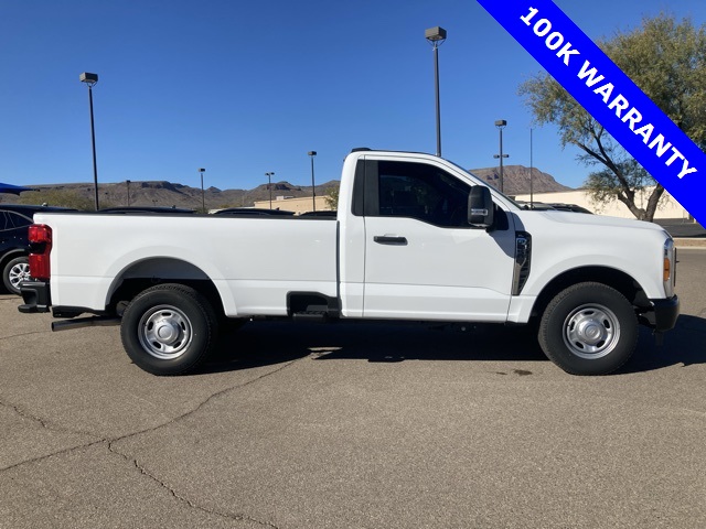 Certified. Oxford White 2023 Ford F-250SD XL RWD 10-Speed Automatic 6.8L V8 Ford Gold Certified Certified, 17" Argent Painted Steel Wheels, 190 Amp Alternator, 3.73 Axle Ratio, 360-Degree Camera Package, 4 Speakers, 4-Wheel Disc Brakes, ABS brakes, Air Conditioning, AM/FM radio, AM/FM Stereo w/MP3 Player, Automatic High Beam, BLIS w/Cross-Traffic Alert, Brake assist, Compass, Delay-off headlights, Dual front impact airbags, Dual front side impact airbags, Electronic Stability Control, Emergency communication system: SYNC 4 911 Assist, Exterior Parking Camera Rear, Front anti-roll bar, Front Center Armrest w/Storage, Front reading lights, Front wheel independent suspension, Fully automatic headlights, GVWR: 10,000 lb Payload Package, HD Vinyl 40/20/40 Split Bench Seat, Heated door mirrors, Illuminated entry, LED Box Lighting, LED Center High-Mounted Stop Lamp (CHMSL) Camera, Low tire pressure warning, Order Code 600A, Outside temperature display, Overhead airbag, Overhead console, Panic alarm, Passenger cancellable airbag, Passenger vanity mirror, Power door mirrors, Power steering, Power windows, Pre-Collision Assist, Rear Parking Sensors, Rear step bumper, Remote keyless entry, Speed control, Steering wheel mounted audio controls, SYNC 4, Tachometer, Telescoping steering wheel, Tilt steering wheel, Traction control, Trip computer, Turn signal indicator mirrors, Upfitter Switches (6), Variably intermittent wipers, XL Driver Assist Package. Odometer is 17796 miles below market average! Ford Certified Pre-Owned means you not only get the reassurance of a 7-Year/100,000-Mile powertrain limited warranty and a 1-Year/12,000 mile comprehensive limited warranty, but also a 172-Point Inspection, 24-hour Roadside Assistance, CARFAX Vehicle History Report, Free 3-Month Trial SiriusXM Radio, Trip Interruption Services, Destination Assistance, Special Financing Rates and Reconditioning performed using manufacturer-authorized parts. With our transparent pricing and purchase process you will enjoy a seamless vehicle buying experience. You can rest assured you are getting the high quality vehicle you deserve at a fair price! Call Anderson Ford & Lincoln in Kingman, Arizona today at (928)-757-3131 to schedule a test drive or log on to www.Andersonfordkingman.com to see our other inventory available.