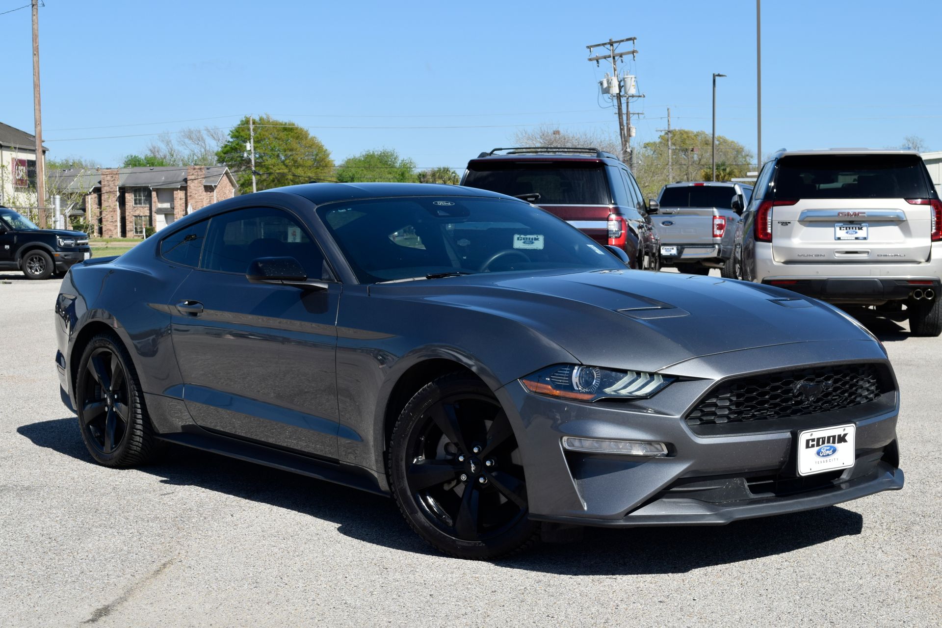 This 2023 Ford Mustang EcoBoost® comes equipped with a dazzling array of premium features, including a SYNC® 3 communications and entertainment system with an 8-inch touchscreen, Apple CarPlay and Android Auto compatibility, and a premium 9-speaker audio system. Dual-zone automatic climate control, rear parking sensors, and selectable drive modes with toggle switches further enhance the driving experience. Exterior touches like the black-painted roof, grille, and mirror caps give this Mustang a bold, distinctive style that is sure to turn heads wherever you go. The 19-inch ebony black-painted aluminum wheels and black blade decklid spoiler complete the athletic, performance-inspired look. This 2023 Ford Mustang EcoBoost® is a certified pre-owned vehicle, meaning it has undergone a rigorous 139-point inspection and comes with a transferable warranty, vehicle history, and roadside assistance. You can drive with confidence, knowing this Mustang has been meticulously maintained and is ready to provide years of reliable performance. This Mustang EcoBoost® is a truly exceptional vehicle that combines thrilling performance, impressive efficiency, and an abundance of premium features. Experience the power and passion of the iconic Mustang nameplate for yourself. Visit our showroom today and let us put you behind the wheel of this remarkable certified pre-owned Mustang.