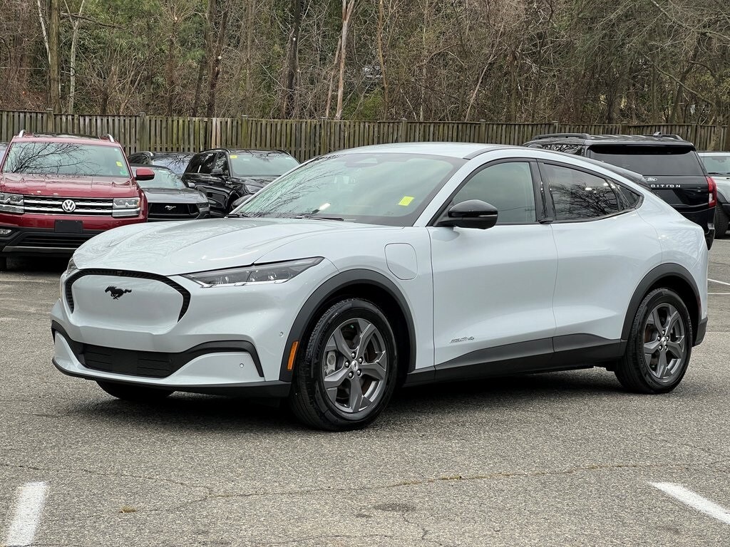 Blue Advantage EV Certified, AWD, traction control, navigation system, premium audio system with USB port, Sirius satellite radio, leather steering wheel with audio and cruise control, SYNC 4, back-up camera, power windows, locks and mirrors, dual heated power mirrors with security approach lights, intelligent access with push button start, remote keyless entry with door keypad, dual digital auto climate control, Apple CarPlay compatible, Android Auto compatible, still under factory warranty, 1 owner, no accidents and well maintained per Carfax, great gas mileage. Mustang Mach-E Select, Dual Electric Motor, Single-Speed Automatic, AWD, Space White Metallic, Black Onyx Premium Synthetic. No dealer preparation, reconditioning or pre-delivery fees added back to the Ourisman value price.