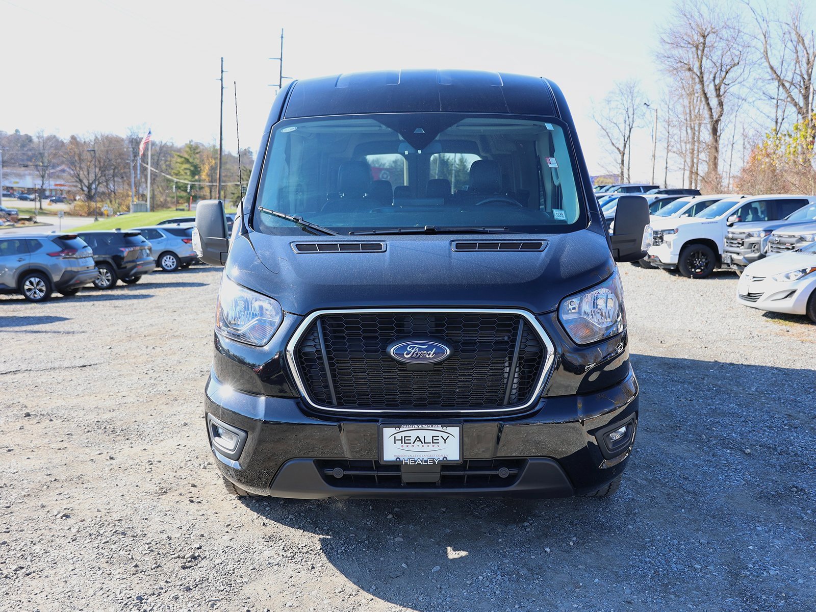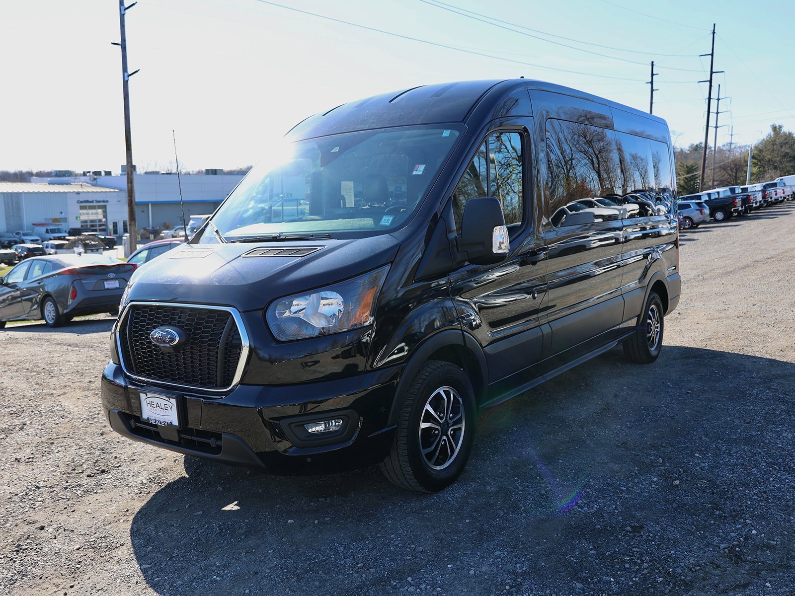 Certified. Black Metallic 2023 Ford Transit-350 XLT RWD 10-Speed Automatic with Overdrive 3.5L V6 Flex Fuel 15-Passenger Seats, 2 Additional Keys (4 Total), 3.73 Axle Ratio, 3rd row seats: split-bench, 4-Wheel Disc Brakes, 4th-Row Bench Seat, 8 Speakers, ABS brakes, Air Conditioning, AM/FM radio, Auto High-beam Headlights, Auto Start-Stop Delete, Auto High-beat Headphones, Auto High-beam Headlights, Auto High-beam Headlights, Brake Assist, Brake Assist, Brake Assist, and more.