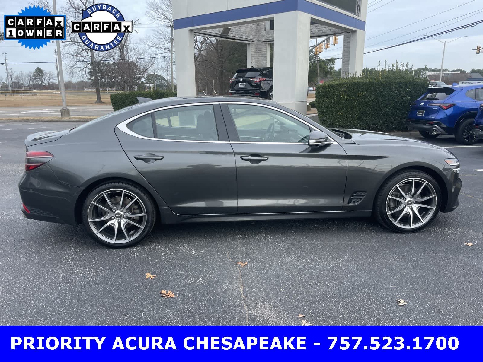 Makalu Gray 2023 Genesis G70 4D Sedan 2.0T I4 8-Speed Automatic with SHIFTRONIC AWD. Leather seats, Bluetooth, One Owner, Lifetime Powertrain Warranty. CARFAX One-Owner. 20/28 City/Highway MPG. Certified. Certification Program Details: Powertrain Guaranteed for LIFE. At Priority Acura Chesapeake we believe in Market Value Pricing for all vehicles in our inventory. We use real-time Internet price comparisons to constantly adjust prices to provide all buyers the best price possible. We utilize state-of-the-art technology to constantly monitor pricing trends in order to offer our shoppers the most competitive pricing and value.
