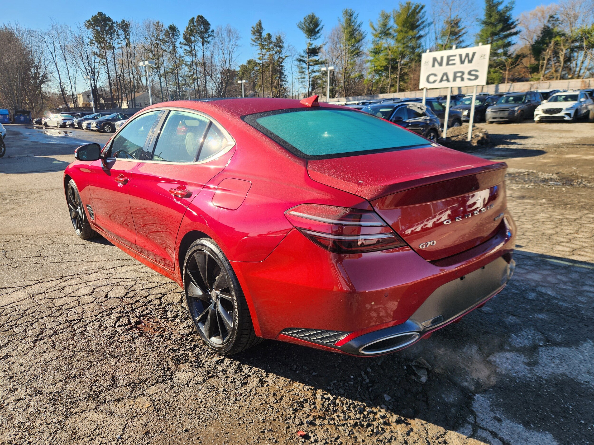 Experience the perfect blend of athletic performance and sophisticated luxury with this Genesis Certified 2023 Genesis G70 3.3T Sport Advanced. Dressed in a head-turning Havana Red and showing just 19,000 miles, this all-wheel-drive powerhouse is propelled by a 3.3L Twin-Turbo V6 engine delivering a blistering 365 horsepower. The Sport Advanced Package elevates the driving experience with premium amenities, including a Lexicon 15-speaker Surround Sound System, ventilated front seats for year-round comfort, and a wide sunroof that opens up the cabin. Because it is Genesis Certified, you benefit from the peace of mind that comes with a rigorous 191-point inspection, an industry-leading 10-year/100,000-mile powertrain limited warranty, and 24/7 roadside assistance, ensuring this bold sport sedan is as reliable as it is exhilarating.