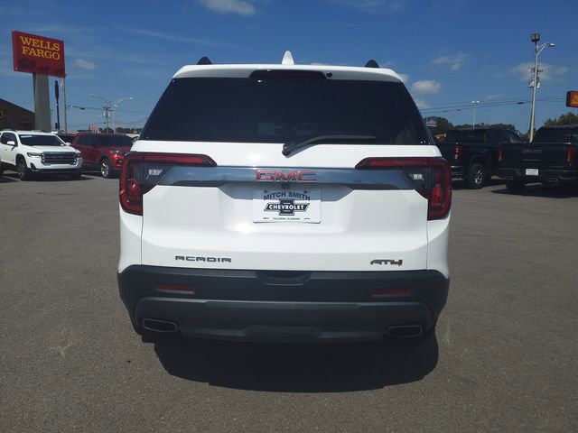 Summit White 2023 GMC Acadia AT4 AWD 9-Speed Automatic 3.6L V6 SIDI AWD, Jet Black Leather. Odometer is 12577 miles below market average! 19/26 City/Highway MPG Call 256-841-4410 today to schedule a test drive!