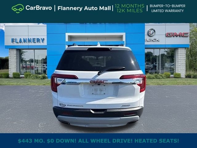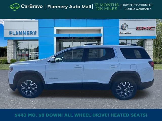 Summit White 2023 GMC Acadia SLE AWD 9-Speed Automatic 2.0L Turbocharged Acadia SLE, 2.0L Turbocharged, 9-Speed Automatic, AWD, Summit White, 120-Volt Power Outlet, 1st & 2nd Row All-Weather Floor Liner (LPO), 3rd Row All-Weather Floor Liner (LPO), 8-Way Power Driver Seat Adjuster, Brushed Aluminum Roof Rails, Driver Convenience Package, Floor Liner Package (LPO), Hands Free Power Programmable Liftgate, Heated Driver & Front Passenger Seats, Integrated Cargo Liner (LPO), Power Driver Lumbar Control Seat Adjuster, Preferred Equipment Group 3SA, Remote Start. This vehicle has been hand-selected, professionally inspected, and serviced by our experienced technicians before being offered for sale. We do not shortcut reconditioning or push problem vehicles our pricing reflects condition, transparency, and peace of mind, not just a number on a screen. Thorough multi-point inspection completed. Vehicle history reviewed. Clean, ready-to-drive condition. Family owned and serving our community since 1938, Flannery Auto Mall has built its reputation on straightforward transactions and standing behind the vehicles we sell. Many listings may look similar online, but condition, inspection, and dealer reputation matter long after the purchase. This vehicle is backed by the GM CarBravo program and includes a 12-month / 12,000-mile limited warranty for added peace of mind. Recent service has been completed please ask for details. If you value a well-prepared vehicle, factory-backed protection, and a trusted local dealership with decades of proven experience, this one deserves a closer look. Odometer is 4302 miles below market average! 22/27 City/Highway MPG.
