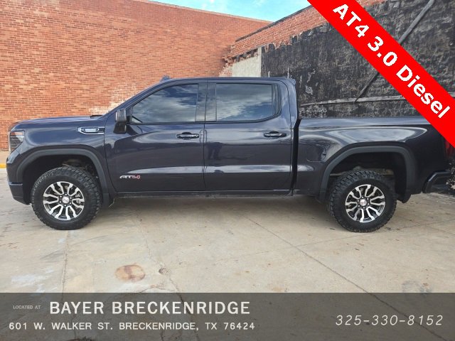 Priced below KBB Fair Purchase Price! CARFAX One-Owner. Certified. Titanium Rush Metallic 2023 GMC Sierra 1500 AT4 4WD 10-Speed Automatic 3.0L I6 10-Speed Automatic, 4WD, Jet Black With Kalahari Accents Leather. Odometer is 31387 miles below market average! GMC Certified Pre-Owned Details: Transferable Warranty, 24 months/24,000 miles (whichever comes first) Certified Pre-Owned Scheduled Maintenance Plan and 3 days/150 miles (whichever comes first) Vehicle Exchange Program. SiriusXM 3-month trial subscription, Vehicle History, Warranty Deductible: $0, Powertrain Limited Warranty: 72 Month/100,000 Mile (whichever comes first) from original in-service date, Limited Warranty: 12 Month/12,000 Mile (whichever comes first) from certified purchase date, Roadside Assistance, 172 Point Inspection. WE PUT CUSTOMERS FIRST!