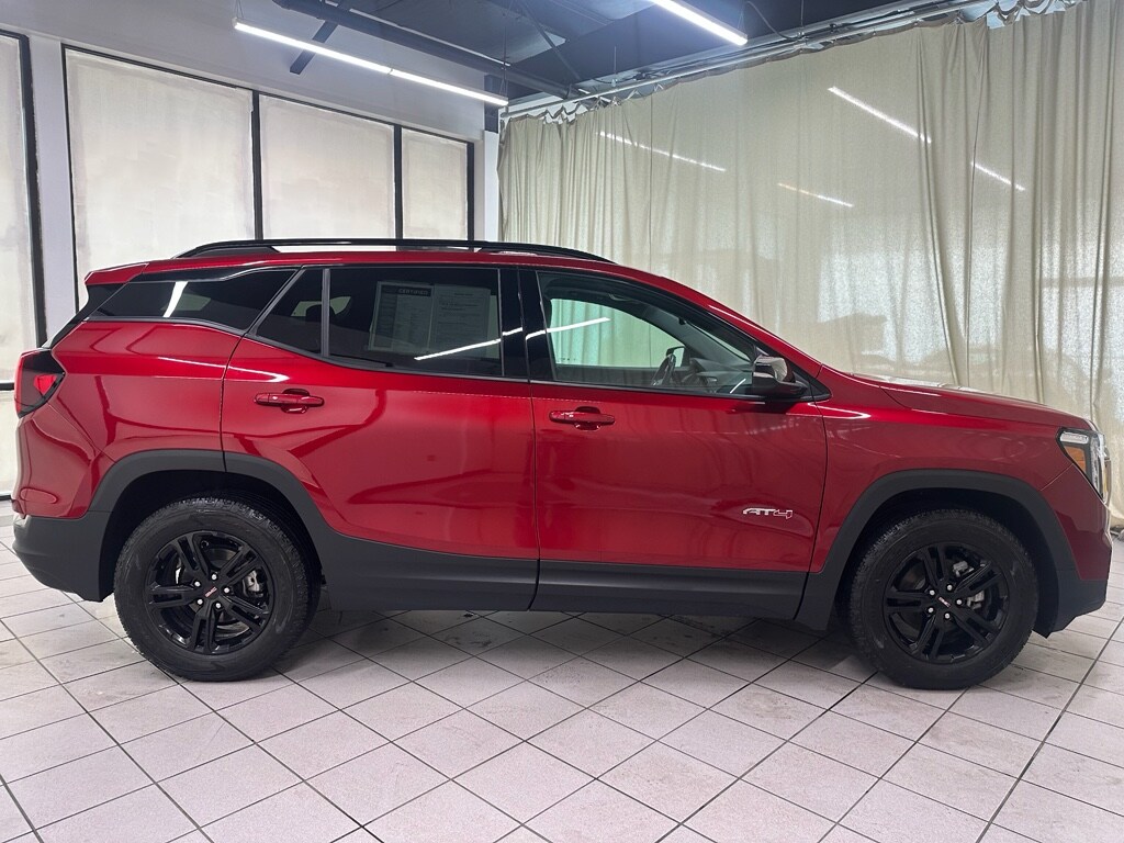 Experience confident driving in this 2023 GMC Terrain AT4, now available in Demotte, IN. With just 25,924 miles, this GMC Terrain offers low mileage, making it a smart value for buyers seeking a nearly-new compact SUV. The efficient 4-cylinder 1.5L gasoline engine pairs with AWD for balanced performance and fuel-conscious capability across changing road conditions. This AT4 trim brings a refined, off-road-inspired appearance and a host of driver-assist features to enhance comfort and safety. Standard technology includes Adaptive Cruise Control for stress-free highway driving, a Back-Up Camera and Rear Parking Sensors to simplify tight maneuvers, and Remote Start for convenience in every season. Automatic Climate Control maintains a comfortable cabin environment for driver and passengers. Inside, expect a thoughtfully designed interior with supportive seating and intuitive controls. The GMC Terrain AT4 also provides practical cargo space and flexible storage solutions to accommodate weekend gear, errands, and family needs. With a strong combination of performance, tech, and capability, this 2023 GMC Terrain stands out among pre-owned SUVs. Priced to move, this GMC Terrain AT4 represents the best price in the area for its condition, features, and mileage. Schedule a test drive in Demotte, IN today and see why this low-mileage AWD GMC Terrain delivers value, comfort, and confidence on every drive.