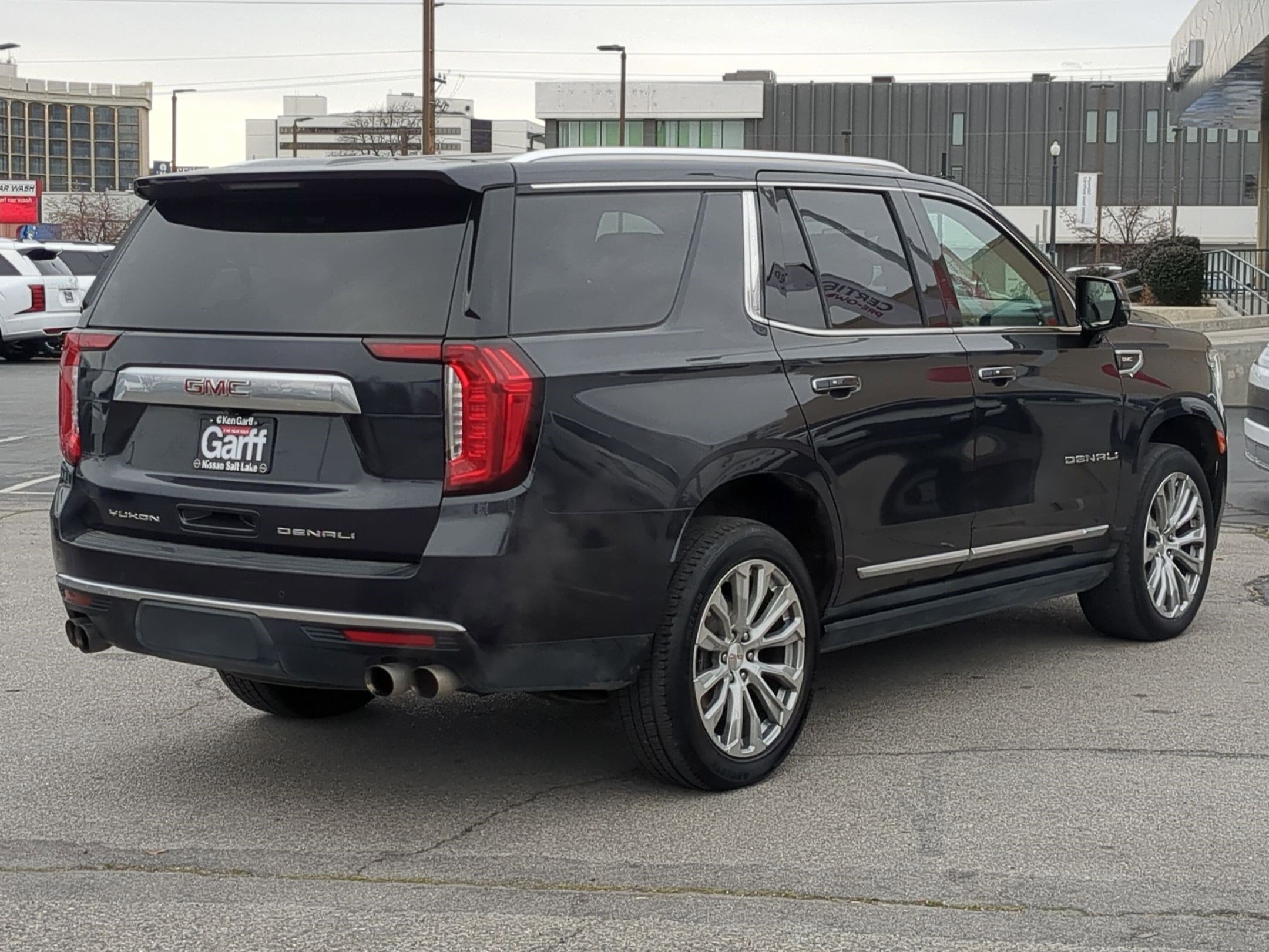 Garff Certified Pre-Owned Certified, 4WD, 14 Speakers, 15 Diagonal Multi-Color Head-Up Display, 2 Presets For Outside Rearview Mirrors, 3 Years of GMC Connected Services, 3 Years of OnStar Safety & Security, 3 Years of OnStar Safety & Security (DISC), 3.23 Rear Axle Ratio, 3rd Row 60/40 Power-Folding Split-Bench Seat, 3rd row seats: split-bench, 4-Wheel Disc Brakes, ABS brakes, Adaptive Cruise Control, Adaptive suspension, Air Conditioning, Alloy wheels, AM/FM radio: SiriusXM with 360L, AM/FM Stereo, Apple CarPlay/Android Auto, Auto High-beam Headlights, Auto-dimming door mirrors, Auto-dimming Rear-View mirror, Auto-leveling suspension, Automatic Emergency Braking, Automatic temperature control, Bodyside moldings, Bose 14-Speaker Surround w/CenterPoint, Brake assist, Bright Front & Rear Door Sill Plates, Bumpers: body-color, Chrome Door Handles w/Body-Color Strip, Compass, Delay-off headlights, Deleted 3 Years of OnStar Safety & Security, Driver door bin, Driver vanity mirror, Dual Exhaust System, Dual front impact airbags, Dual front side impact airbags, Dual-Pane Panoramic Power Sunroof, Electronic Stability Control, Emergency communication system: OnStar and GMC connected services capable, Enhanced Automatic Emergency Braking, Floor Console, Following Distance Indicator, Forward Collision Alert, Four wheel independent suspension, Front & Rear Park Assist, Front anti-roll bar, Front Bucket Seats, Front Center Armrest, Front dual zone A/C, Front fog lights, Front Pedestrian Braking, Front reading lights, Fully automatic headlights, Galvano Bodyside Moldings, Garage door transmitter, Hands-Free Power Programmable Rear Liftgate, HD Surround Vision, Heads-Up Display, Heated & Ventilated Driver & Front Passenger Seats, Heated 2nd Row Outboard Position Seats, Heated door mirrors, Heated Driver & Front Passenger Seats, Heated front seats, Heated rear seats, Heated Steering Wheel, Heated steering wheel, Hill Descent Control, Illuminated entry, Inside Rear-View Auto-Dimming Mirror, IntelliBeam Automatic High Beam On/Off, Lane Change Alert w/Side Blind Zone Alert, Lane Keep Assist w/Lane Departure Warning.