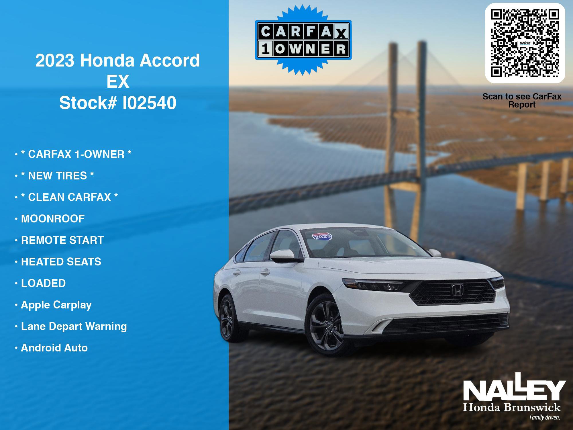 Discover Honda Accord EX Exceptional Savings at Nalley Honda Brunswick! If you are ready to finance a Honda Certified used car near Brunswick, Darien, St Simons Island, and Country Club Estates, Nalley Honda Brunswick is thrilled to offer you a competitive finance offer on this 2023 Honda Accord EX. Use our car payment calculator to estimate your payments, or try our monthly car payment calculator for personalized estimates. For more detailed breakdowns, our car loan payment calculator can help you explore your financing options. For well-qualified buyers shopping at Nalley Honda Brunswick with Tier 1 credit, the estimated monthly payment of $341.00 is calculated as follows: Vehicle Price: $22,578.00, Loan Term: 72 months, Total Payments: $24,552.00 over the loan term, Security Deposit: $0.00, Total Due at Signing: $2,270.00. This and other Honda finance offers help leverage the benefits of Honda Financial Services. Try our car loan payment calculator to find payment plans that suit your budget. Call or drive in for Honda finance deals so you can drive home today like this certified 2023 Honda Accord. Our payment calculator tools make it easy to explore different loan terms and payment options. These Honda finance specials end 3/3/2026.