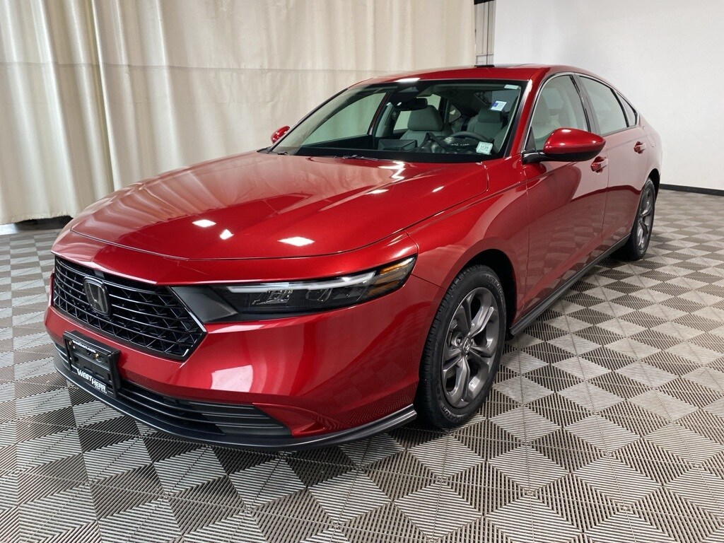 Certified. Carfax One-Owner. Red 2023 Honda Accord EX FWD CVT 1.5T I4 DOHC 16V Turbocharged VTEC Dealer Serviced, Regular Oil Changes. Whether you have good credit, bad credit or no credit at all, get pre-approved today at: https://www.hondacanandaigua.com/finance/apply-for-financing/ 29/37 City/Highway MPG HondaTrue Certified Details: 182 Point Inspection, Powertrain Limited Warranty: 84 Month/100,000 Mile (whichever comes first) from original in-service date, Warranty Deductible: $0, Vehicle History, Roadside Assistance, Vehicles purchased within New Vehicle Limited Warranty period: extends New Vehicle Limited Warranty to 5 years*/60,000 miles*. Honda Care Roadside Assistance for 2 year/100,000 miles (whichever occurs first). Up to two complimentary oil changes within the first year of ownership. SiriusXM 90-Day Trial. Limited Warranty: 24 Month/100,000 Mile (whichever comes first) after new car warranty expires or from certified purchase date. Transferable Warranty.