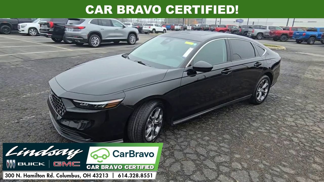2023 Honda Accord Crystal Black Pearl EX CVT 1.5T I4 DOHC 16V Turbocharged VTEC. CAR BRAVO CERTIFIED, BACKUP CAMERA, BLUETOOTH, APPLE CARPLAY/ANDROID AUTO, ONE OWNER, CLEAN AUTOCHECK, REMOTE START, ADAPTIVE CRUISE CONTROL, POWER Moonroof, HEATED SEATS, POWER PACKAGE. Priced below KBB Fair Purchase Price! Odometer is 14416 miles below market average! Certified. Certification Program Details: Type your description here.