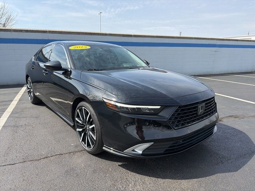 Recent Arrival! Certified. Carfax One-Owner. Crystal Black Pearl 2023 Honda Accord Hybrid Touring w/o BSI FWD eCVT 2.0L 16V DOHC. 46/41 City/Highway MPG.