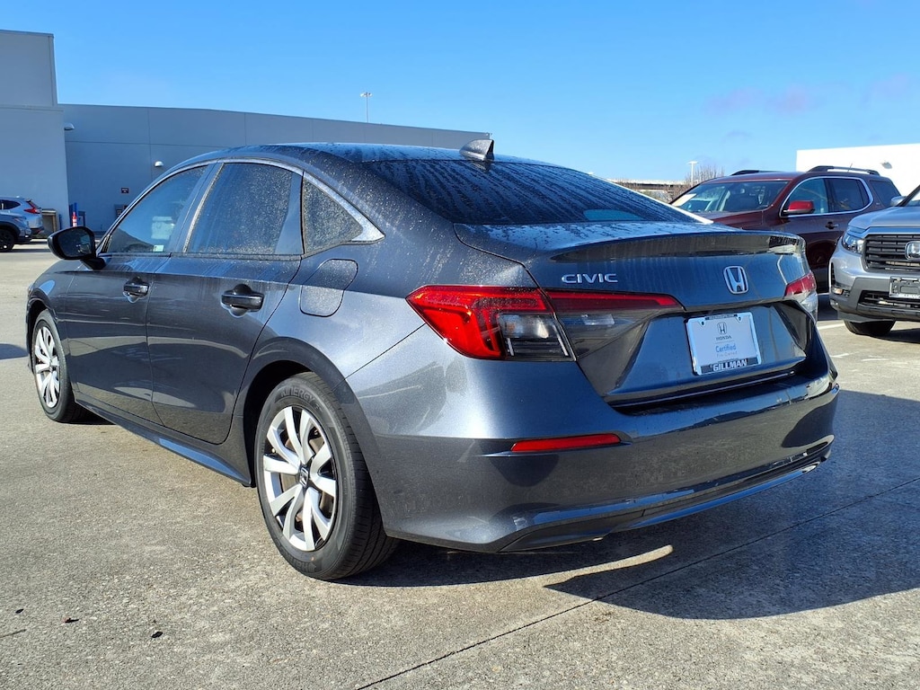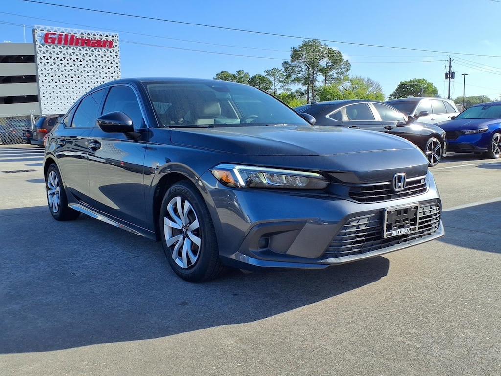 Gillman's Lifetime Engine Warranty lasts as long as you own your vehicle - free with the Gillman Pre-Owned Promise. If the vehicle isn't right for you, return it in purchase condition within 2 days or 200 miles as part of our Happy-Driving Guarantee. (Valid on vehicles under 90,000 miles and less than 7 years old). Drive home in this stylish DK. Gray 2023 Honda Civic LX 4dr Sedan! Enjoy a smooth and efficient ride with its 2.0L I4 engine and CVT transmission, delivering both power and impressive fuel economy. This Civic LX is equipped with advanced safety features including Front Automatic Emergency Braking, Lane Keeping Assist, Adaptive Cruise Control, and a Rear Multi-view Camera System for added peace of mind. Stay connected on the go with Apple CarPlay, Android Auto, Bluetooth wireless data link, and HondaLink compatibility. Convenience features like push-button start, automatic climate control, and a 7-inch touchscreen infotainment system make every drive enjoyable. The Civic's sleek design is highlighted by LED headlights, chrome window trim, and a body-color rear spoiler. Experience legendary Honda reliability and value-schedule your test drive today! All vehicles subject to prior sale. We are not responsible for typographical errors and may change information without notice. Photos may not depict the actual vehicle. Tax, title, and license fees not included. Dealer Discount available to all buyers.Vehicles purchased from Gillman Automotive Group include a Bring It Back Guarantee: return the vehicle in purchase condition within two days or 200 miles. New current-model-year vehicles and qualifying pre-owned vehicles (under 90,000 miles and less than 7 years old) are eligible. Guarantee is non-transferable and has no cash value. Lifetime Warranty available on select pre-owned vehicles. See dealer for details; restrictions may apply.Certified Pre-Owned Peace of mind Vehicle history report Title information Odometer readings Accident data (if applicable) Service history Vehicle usage Recall information (if applicable) Warranty status Free CarFax report A name you can trust Gillman Automotive Group is dedicated to your satisfaction before, during, and after your purchase. We'll go the extra mile to take care of you.