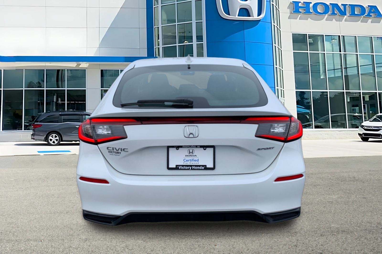 This 2023 Honda Civic Sport vehicle was recently traded in by our store here in Highland. Where, "What you see is what you pay"...no reconditioning or certification fees on any of our preowned vehicles! This Illiana leased vehicle is ready for the market. Well maintained and ready for its next driver! This Beauty has had and passed an extensive 182 Multi-Point Inspection conducted by our Honda factory certified technicians. All necessary services have been done for the appropriate mileage interval. CARFAX One-Owner. Clean CARFAX. Buy with confidence as each of our Pre-Owned Vehicles come equipped with a 90-Day/3000 Mile warranty as well as Car Doc, our exclusive maintenance and membership program. The included Car Doc Program comes with 6 Complimentary Oil Changes and 6 Complimentary Tire Rotations for the first TWO years of car ownership. Also, this vehicle is available to upgrade to a 3 Year or 5 Year Car Doc along with other perks to give you peace of mind when it comes to your driving experience. It's just what the doctor ordered! Don't wait make a date! This vehicle won't last long at this price! Get pre approved at https://victoryhondahighland.com/get-pre-approved. Victory Honda is a leading Dealership in the Highland, Merrillville, Lansing, Matteson, and Schererville area. Located at 9800 Indianapolis Blvd, Highland, IN. We have a friendly, committed sales staff with many years of experience satisfying our customers' needs. Don't waste any time, call us now at (219) 237-0088.