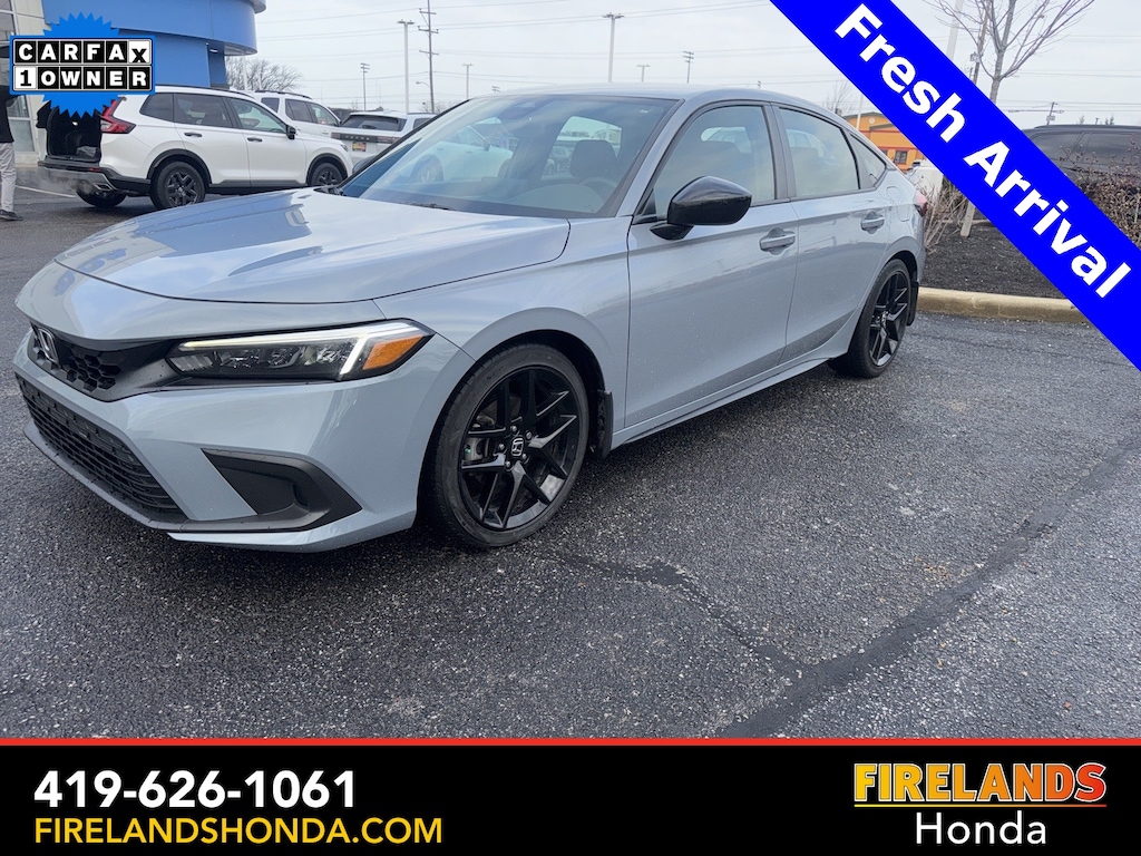 Firelands Honda is proud to offer this fantastic-looking 2023 Honda Civic in Sonic Gray Pearl. This Civic has been checked by our award winning service department. Hot features include: Bluetooth Hands Free, Back Up Camera, Remote Start, Local Trade, Adaptive Cruise Control, Balance of Factory Warranty, Locally Owned New Car Trade, Lane Departure Warning, Apple Carplay/Android Auto, Fog Lights, Automatic Emergency Braking, Forward Collision Warning, Honda Certified, Clean CARFAX, One Owner, No Accidents. Certified. Why is Firelands Honda a Go-To Spot for Sandusky, Norwalk, Elyria and Amherst Drivers Seeking a New or Used Vehicle? It could be our varied and accommodating selection of new Honda models, including the much-loved Honda Accord, CR-V, Ridgeline, Odyssey and Civic. Perhaps it's our equally vast range of high-quality, Firelands Honda-approved used cars. It may also very well be the Honda financing offers available to customers who shop with Firelands Honda. With these auto loan and car lease options, shoppers feel at ease, worry-free, and extra satisfied with their purchase. Firelands Honda isn't only a place for those in the market for a new Honda car. We're also the go-to spot for those already behind the wheel. Customers find our car service and maintenance center, also located in Sandusky, Ohio, both convenient and competent. It doesn't stop there-- Firelands Honda also host an array of services to personalize or enhance your Honda driving experience. Just ask our onsite auto parts and accessories department what we mean. Still not clear about why so many trust Firelands Honda for all of their Honda needs? Visit our dealership at 2301 Hayes Ave. Sandusky, Ohio and find out for yourself! You can reach us by phone at 419-626-1061 or shop 24/7 at www.firelandshonda.com.
