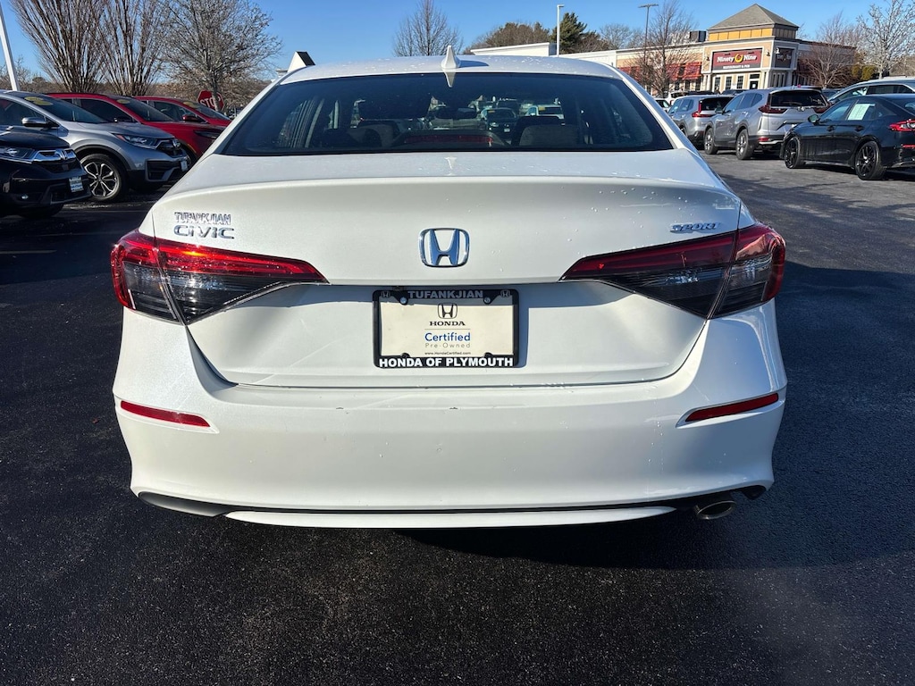 Certified. Platinum White Pearl 2023 Honda Civic Sport FWD CVT 2.0L I4 DOHC 16V i-VTEC one owner, clean vehicle history...no accidents, recent trade in, Honda certified, Civic Sport, 4D Sedan, Platinum White Pearl, Gray with cloth seat trim. Recent Arrival! Odometer is 4948 miles below market average! 30/37 City/Highway MPG. HondaTrue Certified Details: 182 Point Inspection, Vehicles purchased within New Vehicle Limited Warranty period extends New Vehicle Limited Warranty to 5 years/60,000 miles. Honda Care Roadside Assistance for 2 year/100,000 miles (whichever occurs first). Up to two complimentary oil changes within the first year of ownership. SiriusXM 90-Day Trial. Powertrain Limited Warranty: 84 Month/100,000 Mile (whichever comes first) from original in-service date. Roadside Assistance. Warranty Deductible: $0. Transferable Warranty. Vehicle History. Limited Warranty: 24 Month/100,000 Mile (whichever comes first) after new car warranty expires or from certified purchase date. Peace of mind. Vehicle history report. Title information. Odometer readings. Accident data (if applicable). Service history. Vehicle usage. Recall information (if applicable). Warranty status. Free CarFax report. A name you can trust. Tufankjian Honda of Plymouth is dedicated to your satisfaction before, during, and after your purchase. We'll go the extra mile to take care of you.