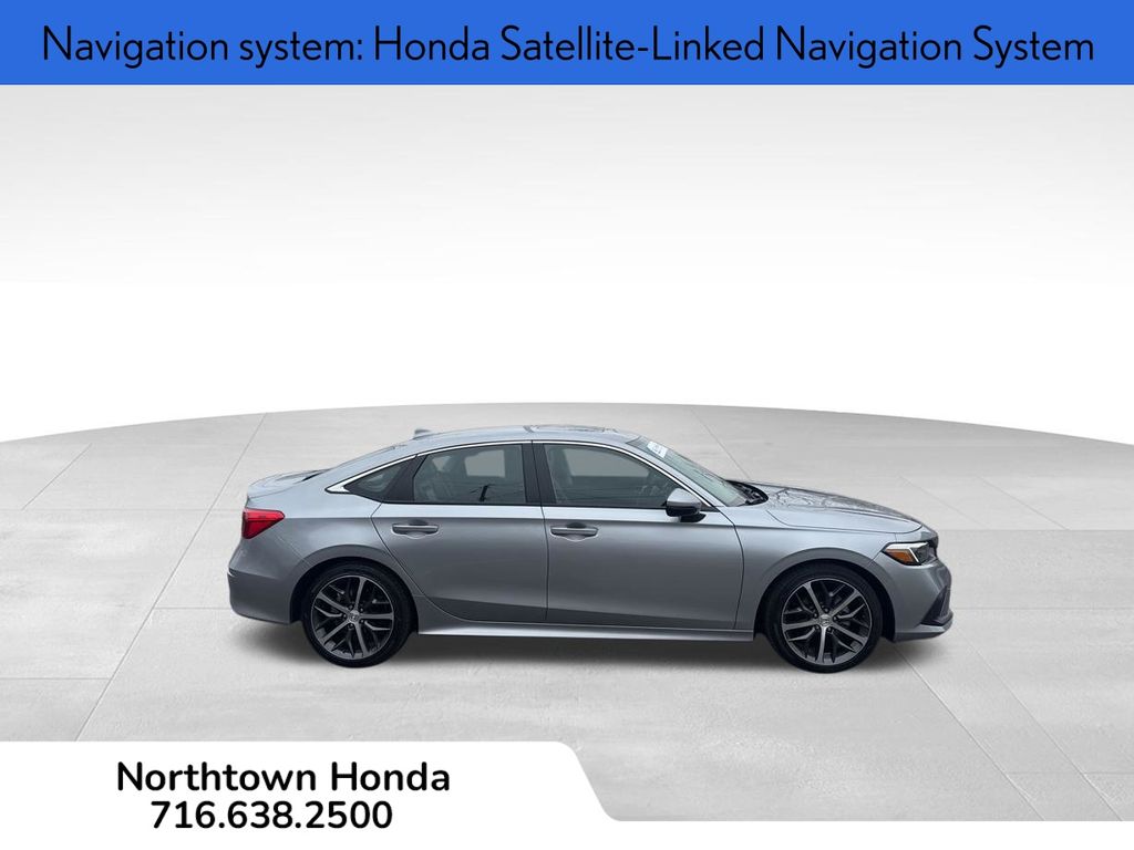Discover the exceptional 2023 Honda Civic Touring, a vehicle that seamlessly blends style, performance, and advanced technology. This certified pre-owned model boasts a sleek silver exterior and a meticulously maintained interior, making it the perfect choice for the discerning driver. Powered by a 1.5L I-4 DI DOHC Turbocharged engine and paired with a CVT transmission, this Civic Touring delivers an impressive balance of efficiency and responsiveness. The advanced safety features provide you and your loved ones with the peace of mind you deserve. Step inside and experience the exceptional craftsmanship of the Civic Touring. The leather-wrapped steering wheel and shift knob, coupled with the 12-speaker Bose premium audio system, create an unparalleled driving experience. The heated front seats and dual-zone automatic climate control ensure your comfort, no matter the weather. With the power moonroof, you can enjoy the great outdoors while staying connected to your digital world through the intuitive Honda Satellite-Linked Navigation System and Apple CarPlay/Android Auto integration. This 2023 Honda Civic Touring is a true testament to the brand's commitment to quality and innovation.