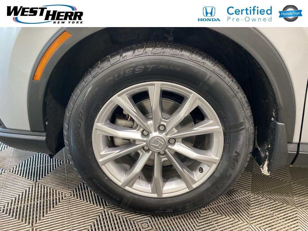 Certified. Carfax One-Owner. Silver 2023 Honda CR-V EX AWD CVT 1.5L I4 DOHC 16V Dealer Serviced, Regular Oil Changes, Adaptive Cruise Control: Adaptive Cruise Control (ACC) with Low-Speed Follow, Apple CarPlay/Android Auto, Automatic temperature control, Power moonroof, Wheels: 18" Sparkle Silver Metallic. Whether you have good credit, bad credit or no credit at all, get pre-approved today at: https://www.hondacanandaigua.com/finance/apply-for-financing/ Odometer is 1125 miles below market average! 27/32 City/Highway MPG HondaTrue Certified Details: 182 Point Inspection, Warranty Deductible: $0, Limited Warranty: 24 Month/100,000 Mile (whichever comes first) after new car warranty expires or from certified purchase date, Vehicles purchased within New Vehicle Limited Warranty period: extends New Vehicle Limited Warranty to 5 years*/60,000 miles*. Honda Care Roadside Assistance for 2 year/100,000 miles (whichever occurs first). Up to two complimentary oil changes within the first year of ownership. SiriusXM 90-Day Trial. Powertrain Limited Warranty: 84 Month/100,000 Mile (whichever comes first) from original in-service date. Transferable Warranty. Roadside Assistance. Vehicle History.