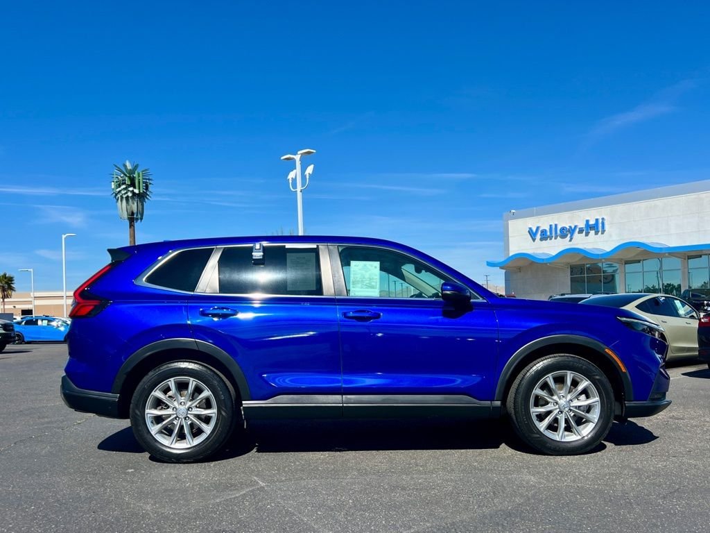 Valley Hi Honda in Victorville, CA, serves the High Desert with a wide range of new and pre-owned Honda vehicles. Our friendly team is dedicated to exceptional customer service, from sales to service and financing. Visit us today for all your automotive needs! CR-V EX-L, HondaTrue Certified Certified, 4D Sport Utility, 1.5L I4 DOHC 16V, CVT, AWD, Blue, Black Leather. Blue AWD 27/32 City/Highway MPG 2023 Honda CR-V EX-L 1.5L I4 DOHC 16V. If you're searching for a high-quality vehicle or need professional auto repairs close to home, come to Valley Hi Honda, the only Honda dealer in the High Desert. We have an expert team ready to help with everything from flexible Honda financing options to top-notch Honda service to ensure that you fully enjoy your time on the road. Come meet with the team at Valley Hi Honda and see how our hometown feel, great prices and incredible selection make us the local car dealer you can trust! All vehicles subject to prior sale.