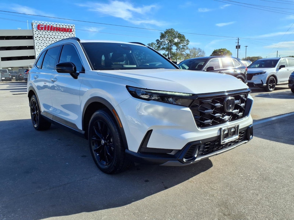 Gillman's Lifetime Engine Warranty lasts as long as you own your vehicle - free with the Gillman Pre-Owned Promise. If the vehicle isn't right for you, return it in purchase condition within 2 days or 200 miles as part of our Happy-Driving Guarantee. (Valid on vehicles under 90,000 miles and less than 7 years old). Experience the perfect blend of efficiency, versatility, and modern technology with this White 2023 Honda CR-V Hybrid AWD Sport. Boasting Honda's legendary reliability and a smooth 2.0L Hybrid engine paired with advanced All-Wheel Drive, this SUV is ready for any journey. Enjoy premium features like Apple CarPlay and Android Auto integration, heated front seats, adaptive cruise control, lane keeping assist, and a power moonroof for an elevated driving experience. The spacious, flexible interior includes split-folding rear seats, rear air vents, and ample cargo space. Safety is top priority with front automatic emergency braking, pedestrian detection, blind spot monitoring, rear cross traffic alert, and a multi-view rear camera. Stay connected and in control with HondaLink app compatibility, customizable digital display, and multiple USB charging outlets. With sleek aluminum alloy wheels, LED headlights, and a bold exterior, this CR-V Hybrid Sport is as stylish as it is practical. Discover efficiency and comfort for your next adventure-schedule a test drive today! All vehicles subject to prior sale. We are not responsible for typographical errors and may change information without notice. Photos may not depict the actual vehicle. Tax, title, and license fees not included. Dealer Discount available to all buyers.Vehicles purchased from Gillman Automotive Group include a Bring It Back Guarantee: return the vehicle in purchase condition within two days or 200 miles. New current-model-year vehicles and qualifying pre-owned vehicles (under 90,000 miles and less than 7 years old) are eligible. Guarantee is non-transferable and has no cash value. Lifetime Warranty available on select pre-owned vehicles. See dealer for details; restrictions may apply.