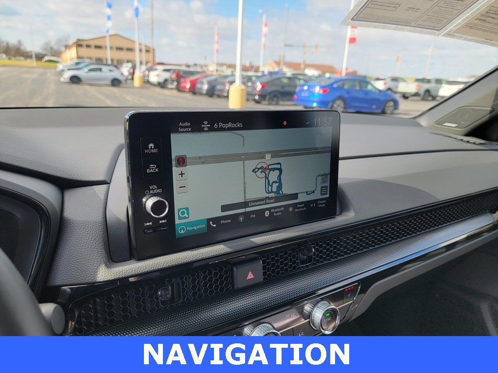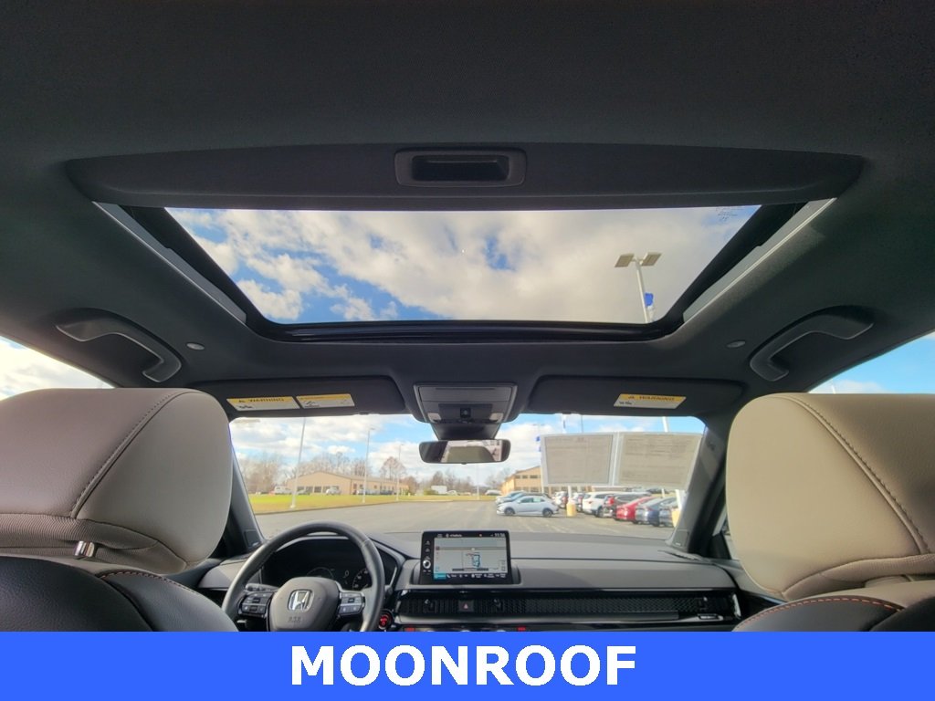 Platinum White Pearl 2023 Honda CR-V Hybrid Sport Touring, Gray w/Leather Seat Trim. Blind Spot Information (BSI) System warning, Front dual zone A/C, Fully automatic headlights, Heated door mirrors, Heated front seats, Heated steering wheel, Memory seat, Navigation System, Power Liftgate, Power moonroof, Bose Premium Sound System w/Navigation, Rain sensing wipers, Remote keyless entry.