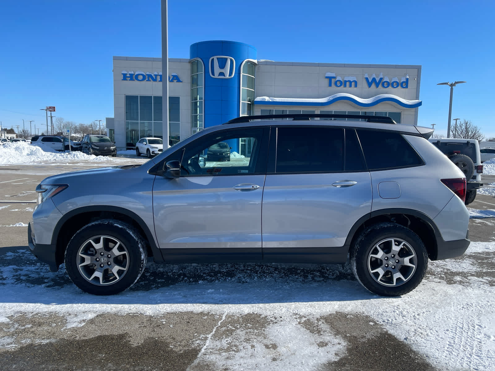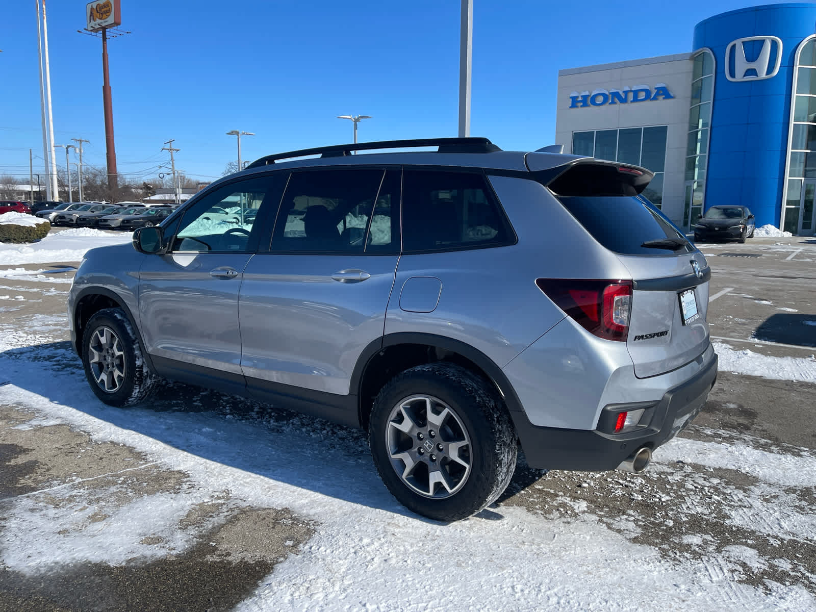 Certified Pre-Owned 2023 Honda Passport TrailSport. This SUV features a V-6 engine, all-wheel drive, and a comfortable interior with leather upholstery. It offers a good balance of power, comfort, and storage, making it a practical choice for those seeking reliability and versatility in a midsize SUV.