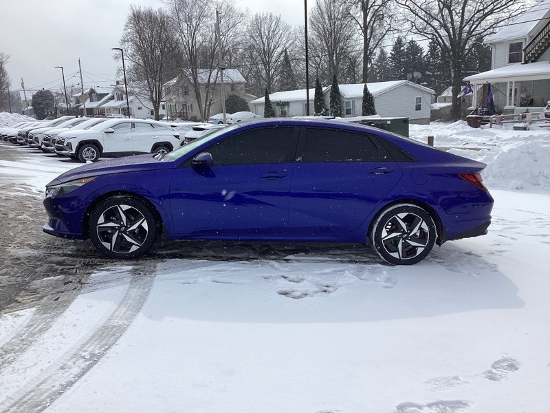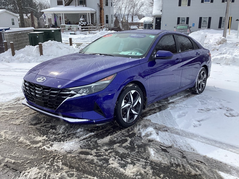 Certified Pre-Owned, 16" x 6.5J Alloy Wheels, 2nd Row USB Charge Port, 4-Wheel Disc Brakes, 6 Speakers, ABS brakes, Air Conditioning, Alloy wheels, AM/FM radio: SiriusXM, Apple CarPlay & Android Auto, Auto High-beam Headlights, Automatic temperature control, Brake assist, Bumpers: body-color, Carpeted Floor Mats, Cloth Seat Trim, Convenience Package, Delay-off headlights, Driver door bin, Driver vanity mirror, Dual front impact airbags, Dual front side impact airbags, Electronic Parking Brake, Electronic Stability Control, Emergency communication system: Blue Link Connected Car Service (3-year complimentary subscription), Exterior Parking Camera Rear, Forward Collision Avoidance Assist, Front anti-roll bar, Front Bucket Seats, Front Center Armrest, Front dual zone A/C, Front reading lights, Front wheel independent suspension, Full 10.25" LCD TFT Cluster, Fully automatic headlights, Heated Front Seats, Heated Outside Mirrors, Illuminated entry, Leather-Wrapped Steering Wheel, LED Interior Lights, Low tire pressure warning, Mudguards, Occupant sensing airbag, Option Group 02, Outside temperature display, Overhead airbag, Overhead console, Panic alarm, Passenger door bin, Passenger vanity mirror, Power door mirrors, Power steering, Power windows, Radio: AM/FM/HD/SiriusXM Audio System, Radio: AM/FM/HD/SiriusXM Display Audio, Rear window defroster, Remote keyless entry, Reversible Cargo Tray, Security system, Smart Cruise Control w/Stop & Go, Speed control, Speed-sensing steering, Steering wheel mounted audio controls, Tachometer, Telescoping steering wheel, Tilt steering wheel, Traction control, Trip computer, Variably intermittent wipers, Wheels: 17" x 7.0J Machine Finish Alloy, Wireless Charging Pad. Certified. Intense Blue 2023 Hyundai Elantra SEL FWD CVT I4. Recent Arrival! Odometer is 6736 miles below market average! 30/40 City/Highway MPG. Certification Program Details: Hyundai Certified Pre-Owned.