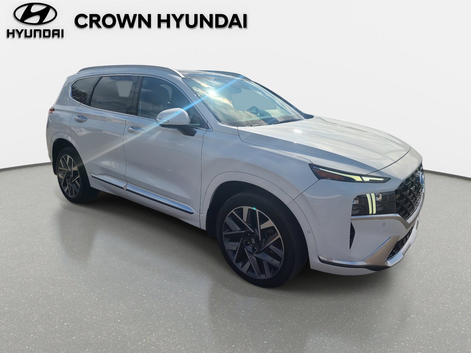 This Hyundai Santa Fe Calligraphy has 15,592 miles on it, which is the automotive equivalent of barely unpacked. Its past the showroom phase, nowhere near the worn phase, and sitting squarely in that magical sweet spot where everything feels new but the price has calmed down and started behaving. This is the top trim. The Calligraphy. The one Hyundai builds when it decides subtlety is optional and comfort is mandatory. This Santa Fe did not come to play small. Passed Hyundai's rigorous 173-point inspection because it looks great is not a quality-control system. Backed by a 10-year or 100,000-mile powertrain limited warranty that takes commitment very seriously. Includes 10 years of unlimited mileage roadside assistance because life does not give warnings. Comes with a CARFAX vehicle history report for full transparency. No certification fees and no reconditioning fees because Crown does not believe in surprise math. That means your getting a barely driven Santa Fe Calligraphy with full CPO protection, without paying the brand-new price that usually causes deep sighs, spreadsheets, and philosophical conversations about budgets. And because it comes from Crown, you're backed by over 55 years of experience, live market pricing that reflects reality, and a dealership that believes confidence is earned by doing things right, not talking louder. This Santa Fe Calligraphy delivers low miles, top-tier luxury, advanced technology, and serious Certified Pre-Owned protection in one beautifully balanced package.