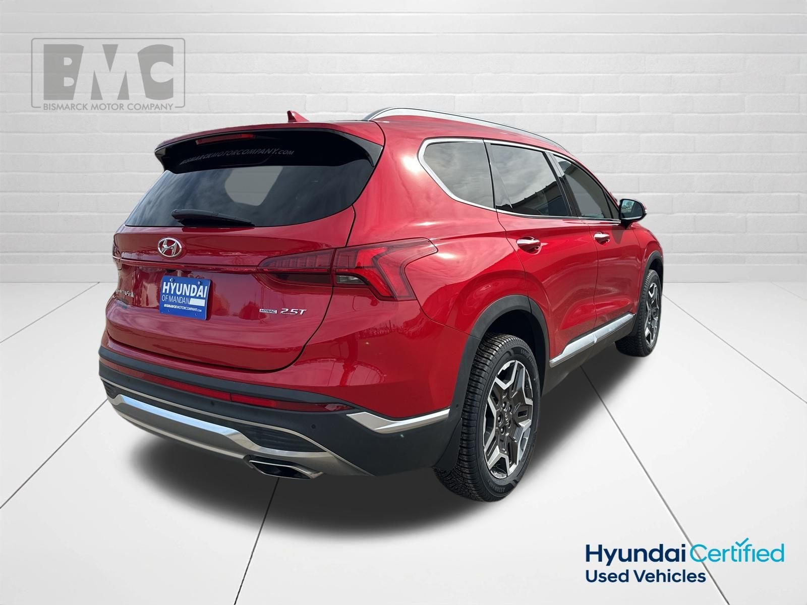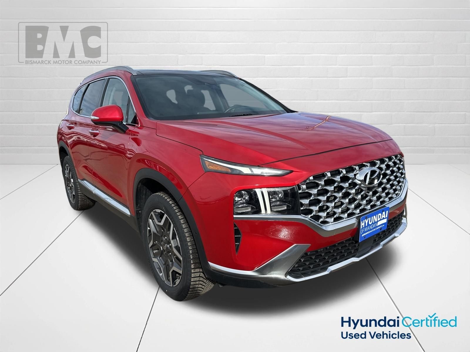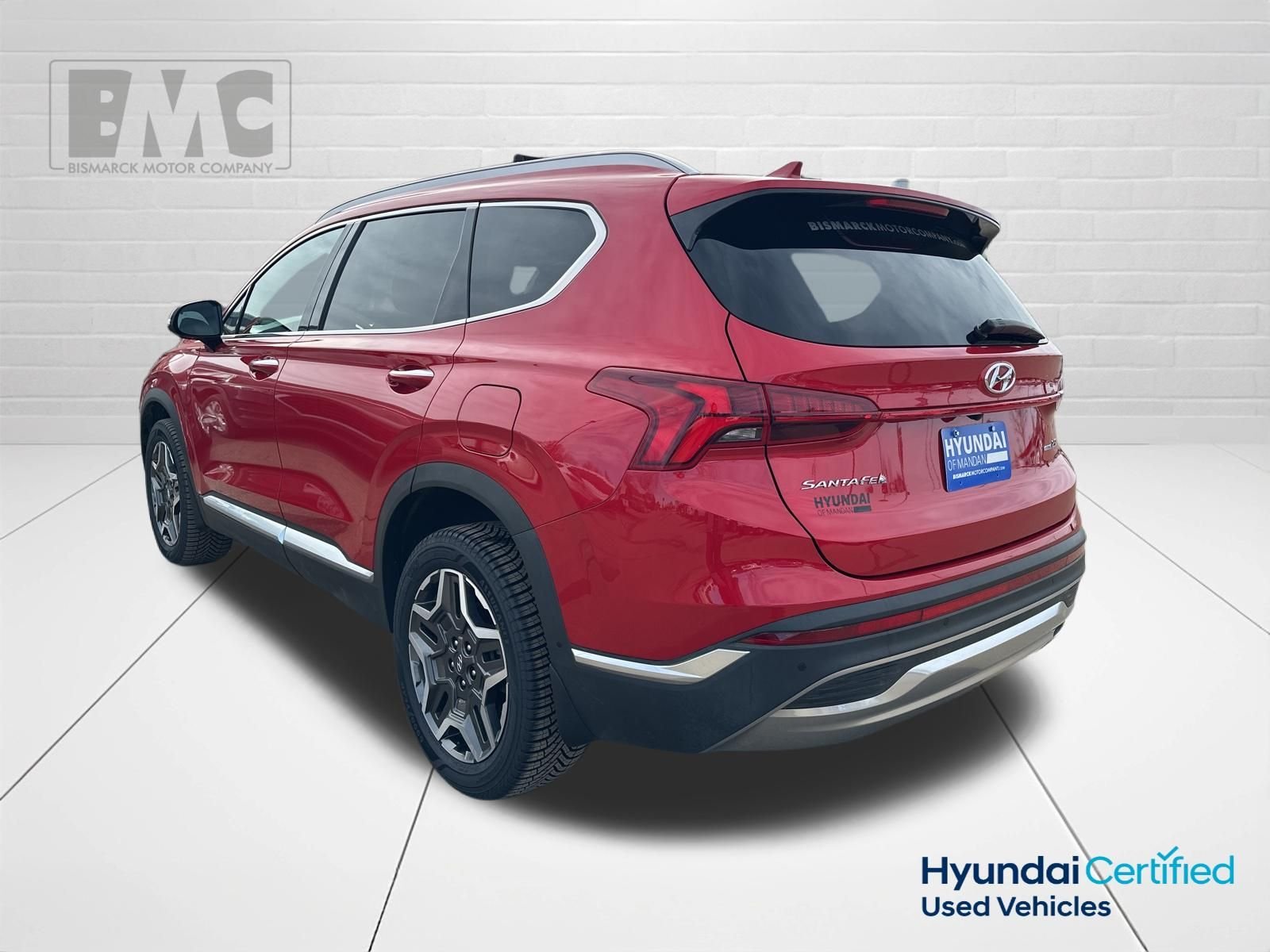 At Bismarck Motor Company, we believe car buying should be transparent and pressure-free. Every vehicle we sell is thoroughly inspected, competitively priced, and comes with our commitment to honest service. No games, no gimmicks—just quality vehicles and people who care about getting you on the road with confidence. This stunning 2023 Hyundai Santa Fe Limited comes equipped with a host of premium features that are sure to impress. Boasting a sleek Calypso Red exterior, this vehicle commands attention wherever it goes. Inside, you'll find a spacious and well-appointed cabin with luxurious leather seating, a panoramic sunroof, and a state-of-the-art infotainment system with navigation, Apple CarPlay, and Android Auto. Under the hood, the Santa Fe Limited is powered by a 2.5L I4 engine paired with a smooth-shifting Shiftronic transmission and Hyundai's advanced all-wheel-drive system. This combination delivers a confident and responsive driving experience, with an impressive fuel efficiency of 21 MPG in the city and 28 MPG on the highway. This 2023 Hyundai Santa Fe Limited has been meticulously maintained and is now available for you to experience. With just 37,763 miles on the odometer, this SUV is in excellent condition and ready to provide you with years of reliable and enjoyable driving. As a Certified Pre-Owned vehicle, this Santa Fe Limited has undergone a rigorous 173-point inspection and comes with a comprehensive warranty for your peace of mind. You can trust that you're getting a top-quality vehicle that has been thoroughly vetted and is ready to take you on your next adventure.