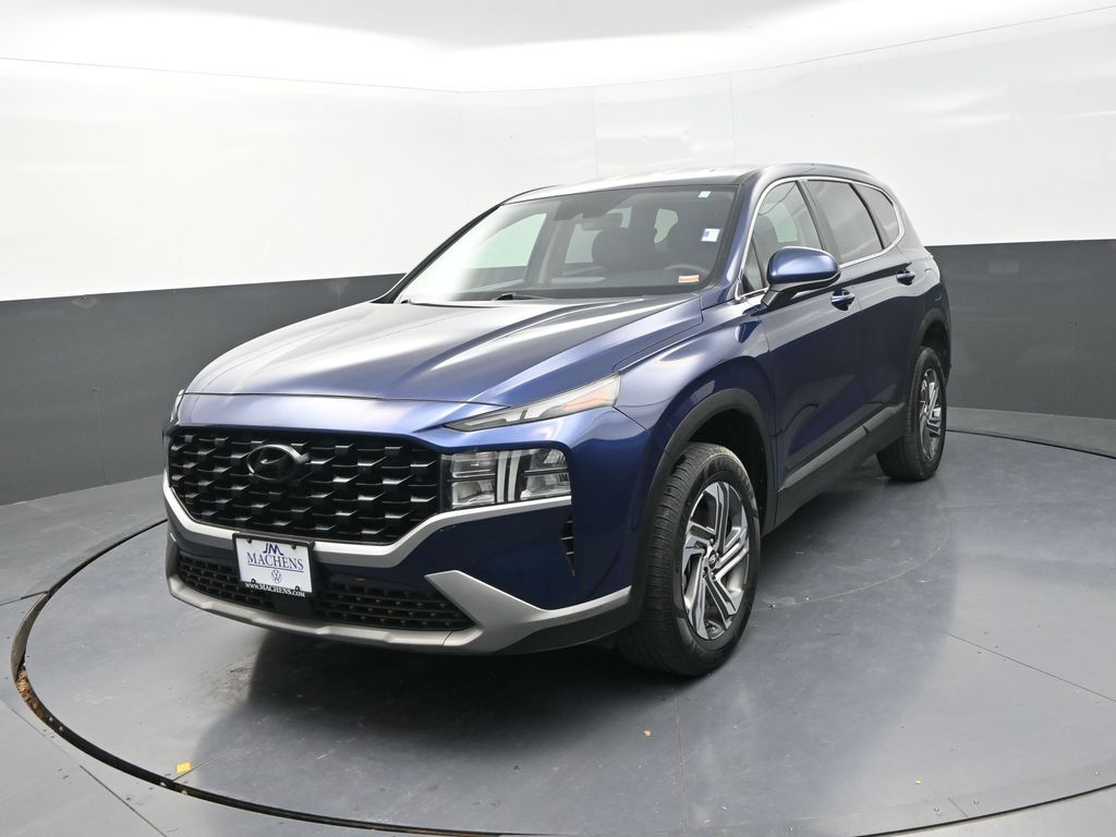 This 2023 Hyundai Santa Fe SE finished in Stormy Sea with a Gray cloth interior offers a perfect balance of modern design, everyday comfort, and all-weather capability. With its smooth ride and confident AWD system, this Santa Fe is well suited for daily commuting, family travel, and weekend getaways alike. The exterior styling is clean and contemporary, while alloy wheels and fully automatic headlights with auto high-beam functionality enhance both appearance and visibility. Its solid build quality and thoughtful engineering make it a dependable and versatile midsize SUV for a wide range of driving needs. Inside, the cabin is designed with comfort and convenience in mind. The Gray cloth seating provides a comfortable and supportive environment, complemented by a spacious interior layout and intuitive controls. Apple CarPlay and Android Auto integration allow seamless access to navigation, music, calls, and apps through the AM/FM Display Audio system, while Bluetooth connectivity and steering wheelmounted controls help keep your focus on the road. Power windows, power door mirrors, power steering, and air conditioning all come standard, ensuring a comfortable and user-friendly driving experience in every season. Rear window defrost and rear window wiper add extra confidence during inclement weather. Safety and practicality are key strengths of this Santa Fe SE. Dual front side-impact airbags, stability systems, and a panic alarm contribute to peace of mind for both driver and passengers. Variably intermittent wipers, delay-off headlights, and a well-matched axle ratio enhance overall driving confidence and efficiency. With its combination of technology, safety, and AWD capability, this 2023 Hyundai Santa Fe SE is an excellent choice for drivers seeking a reliable, well-equipped SUV that fits an active lifestyle.