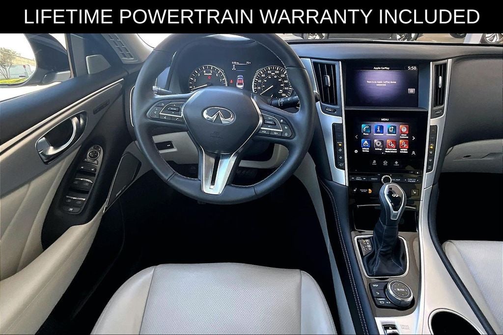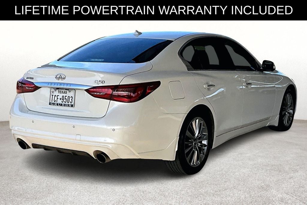 Recent Arrival! CARFAX One-Owner. Certified. Grubbs INFINITI offers this Market Priced Pre-Owned 2023 INFINITI Q50 LUXE in Majestic White with a premium Stone interior. Fully inspected and all Eligible Vehicles are backed by our exclusive Grubbs Lifetime Powertrain Warranty, it comes loaded with features. 2023 INFINITI Q50 LUXE 4D Sedan RWD 3.0L V6 7-Speed Automatic with Overdrive Majestic White Upgraded Wheel Package. INFINITI Certified Pre-Owned Details: 167 Point Inspection, Roadside Assistance, 1-Year Prepaid Service Visit Included. Looking for a reliable used truck, spacious SUV, or fuel-efficient pre-owned car? This INFINITI delivers exceptional value, performance, and peace of mind. Discover why buyers nationwide trust Grubbs INFINITI of Grapevine, a family-owned dealership proudly serving customers since 1948.