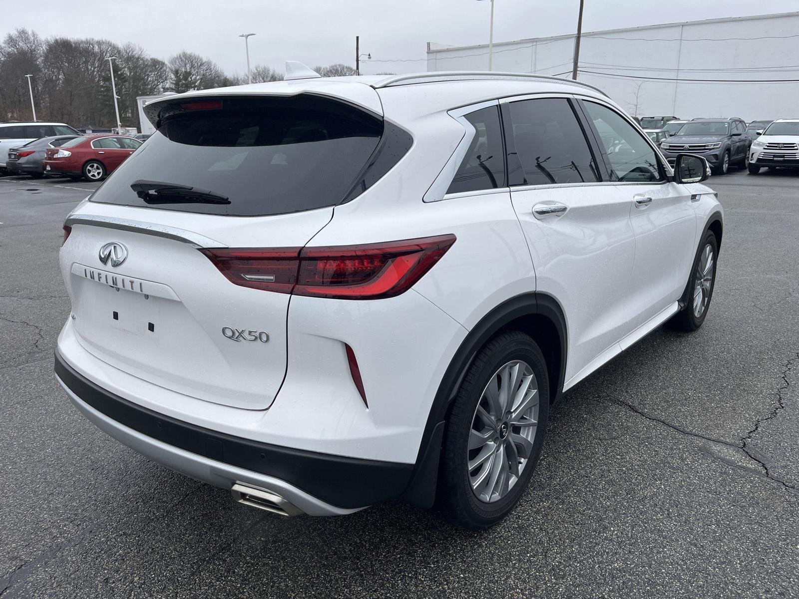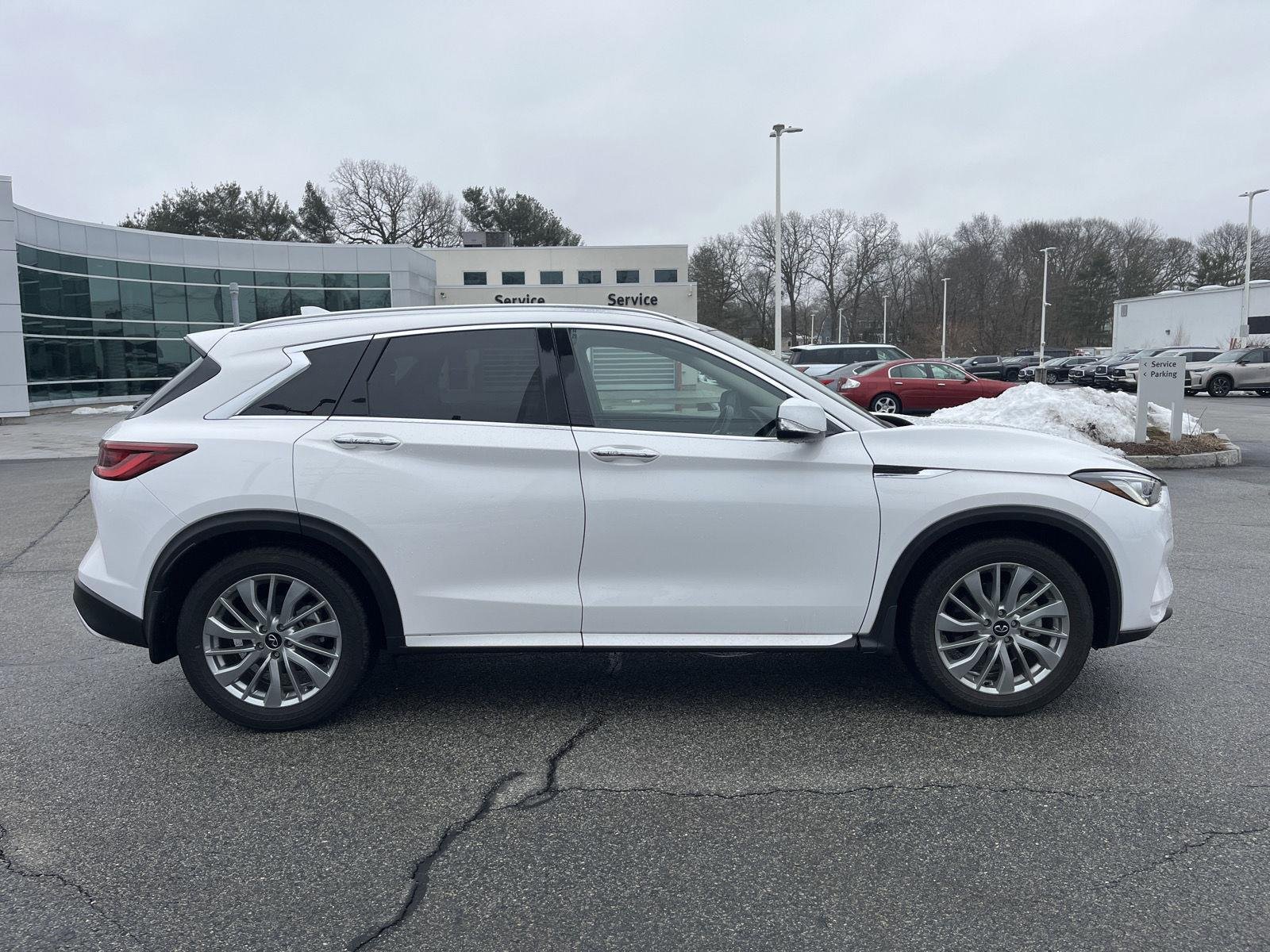 This Certified 2023 INFINITI QX50 LUXE, has a Lunar White exterior and a Graphite interior color. 4,856 miles. Stock Number PF123595. You can connect with us by calling 781-329-3040. At INFINITI of Norwood, we're here to Serve you! Our staff is 100% dedicated to customer satisfaction and we understand that you need clear, transparent information throughout the car buying process. With our live market pricing philosophy, we offer the right cars at the right price, and the transparency to back it up!