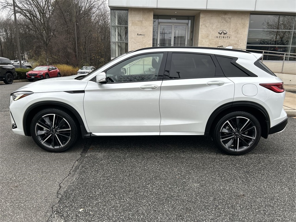 Certified. Radiant White 2023 INFINITI QX50 Sport Clean CARFAX. CARFAX One-Owner. INFINITI Certified Pre-Owned Details: Roadside Assistance, Limited Warranty: 72 Month/Unlimited Mile from original in-service date, Warranty Deductible: $0, Transferable Warranty, Vehicle History, 1-Year Prepaid Service Visit Included. 6 Year/75,000 Mile Warranty for Vehicles With Less Than 15,000 Miles at Time of Certification. 6 Year/Unlimited Mile Warranty for Vehicles with 15,001-60,000 Miles at Time of Certification. INFINITI ONLY Models Qualify. 167 Point Inspection. Look nowhere else, to purchase a car and experience the all-new Ramsey INFINITI. We welcome you to have an exceptional experience once you walk in. Come meet our highly trained professional staff and management team. We want you to experience a new way to buy a car and join our family. Come in for the Ramsey Advantage.