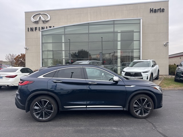Boldly designed and purposefully engineered, this 2023 INFINITI QX55 LUXE AWD blends dynamic coupe styling with luxury SUV practicality. Dressed in Hermosa Blue with a refined Stone interior, this single-owner lease return offers top-tier tech, luxury, and full transparency with a flawless CARFAX and regular INFINITI dealer servicing. This QX55 has been exceptionally cared for. Interior is free of wear, non-smoker owned, and loaded with luxury. All servicing performed on time, with matching tires and brakes exceeding standards. Proudly offered by Harte INFINITI in Hartford. Serving West Hartford, Glastonbury, New Britain, Manchester, East Hartford, Middletown, Windsor, Meriden, Enfield, and Springfield, MA. Call today to schedule your VIP showing vehicles this clean dont sit long!