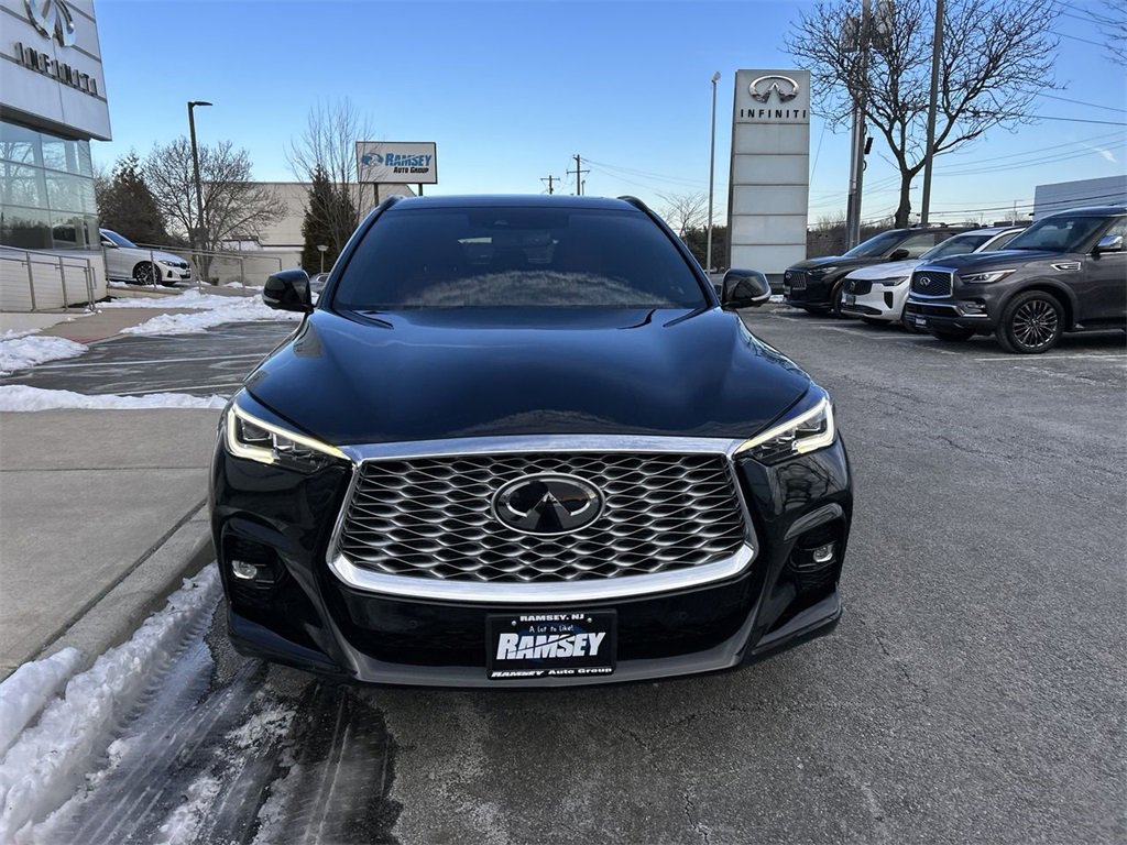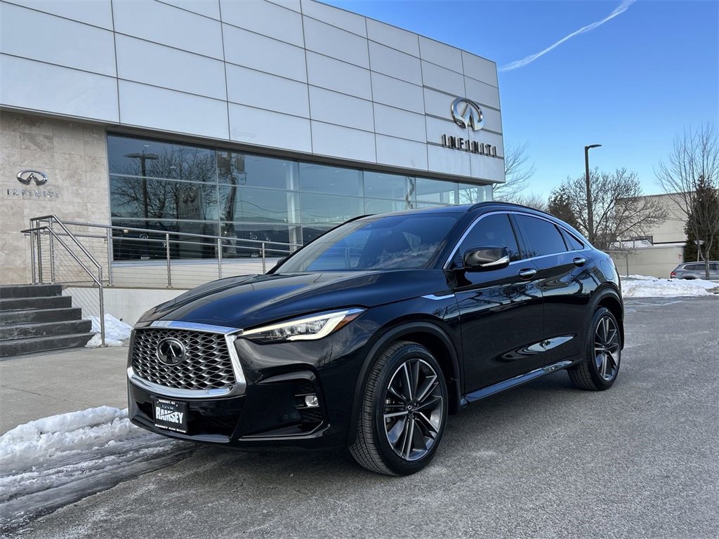 Certified. Mineral Black 2023 Infiniti QX55 Sensory Clean CARFAX. CARFAX One-Owner. Infiniti Certified Pre-Owned Details: Roadside Assistance, Vehicle History, Transferable Warranty, Warranty Deductible: $0, 167 Point Inspection, Limited Warranty: 72 Month/Unlimited Mile from original in-service date, 1-Year Prepaid Service Visit Included. 6 Year/75,000 Mile Warranty for Vehicles With Less Than 15,000 Miles at Time of Certification. 6 Year/Unlimited Mile Warranty for Vehicles with 15,001-60,000 Miles at Time of Certification. Infiniti only models qualify. Look nowhere else, to purchase a car and experience the all-new Ramsey Infiniti. We welcome you to have an exceptional experience once you walk in. Come meet our highly trained professional staff and management team. We want you to experience a new way to buy a car and join our family. Come in for the Ramsey Advantage.