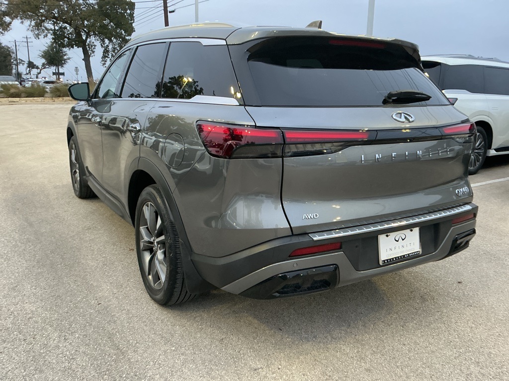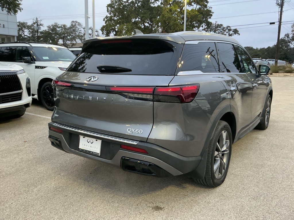 Certified. INFINITI Certified Pre-Owned Details: Roadside Assistance, Warranty Deductible: $0, Transferable Warranty, 1-Year Prepaid Service Visit Included. 6 Year/75,000 Mile Warranty for Vehicles With Less Than 15,000 Miles at Time of Certification. 6 Year/Unlimited Mile Warranty for Vehicles with 15,001-60,000 Miles at Time of Certification. INFINITI ONLY Models Qualify. Limited Warranty: 72 Month/Unlimited Mile from original in-service date. Vehicle History. 167 Point Inspection. Graphite Shadow 2023 INFINITI QX60 LUXE Certified, Two Sets of Keys, One Owner, Clean Carfax, Heated and Cooled Seats, Navigation, Apple CarPlay/Android Auto, Intelligent Cruise Control, Blind Spot Warning, Blind Spot Assist, Rear Cross Traffic Alert, Around View Monitor; 360 camera, Predictive Forward Collision Warning, Forward Emergency Braking w/ pedestrian detection, Lane Departure Warning, Lane Departure Prevention, Rear Automatic Braking, Panoramic Moonroof, Alloy wheels, Garage door transmitter: HomeLink, Heated steering wheel, Navigation system: INFINITI InTouch Navigation, Power Liftgate, Power moonroof, Telescoping steering wheel, Tilt steering wheel, Wheels: 20" x 8J Sporty Machined Aluminum Alloy. Priced below KBB Fair Purchase Price! CARFAX One-Owner. Clean CARFAX. Experience true Hill Country hospitality at INFINITI of Boerne, where luxury and care go hand in hand. Our team is passionate about helping you find the perfect vehicle at the right value, with a focus on making every visit comfortable, welcoming, and tailored to you. Visit INFINITI of Boerne today or contact us at 210-477-1794 to schedule a test drive.