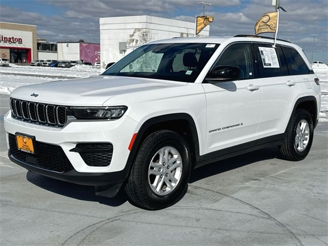 Recent Arrival! 2023 Jeep Grand Cherokee Laredo Bright White Clearcoat 8-Speed Automatic CARFAX One-Owner. Grand Cherokee Laredo, 4D Sport Utility, 3.6L V6 24V VVT, 8-Speed Automatic, 4WD, Bright White Clearcoat, Black Cloth, 6 Speakers, Apple CarPlay®, Automatic Temperature Control, Brake assist, Bumpers: body-color, Cloth Seats, Four wheel independent suspension, Front Bucket Seats, Front dual zone A/C, Fully Automatic Headlights, Google Android AutoTM, Heated door mirrors, ParkView Rear Back-Up Camera, Power door mirrors, Quick Order Package 22A Laredo, Radio data system, Radio: Uconnect 5 w/8.4" Display, Remote Keyless Entry, Speed control, Speed-Sensitive Wipers, Split folding rear seat, Spoiler, Steering wheel mounted audio controls, Wheels: 17" x 6.5" Fully Painted Aluminum. If you need a new or Pre-Owned vehicle our Banks are here to get you on the road. 100,000 mile Certified Warranty is Available for this vehicle!