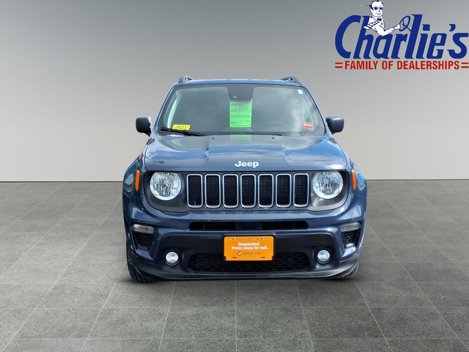 Certified Pre-Owned 2023 Jeep Renegade Latitude SUV. Located at Charlie's Pre-Owned. Please confirm the details of this vehicle and the incentives you may or may not qualify for with the dealer to ensure its accuracy. Selling price may vary from MSRP as dealer sets selling price, please ask dealer for details on adjustments or discounts. Additionally, the advertised price does not reflect the final selling price. It does not include state sales tax, vehicle registration fees, finance charges, $499 Doc fee or any other fees required by law. Manufacturer vehicle accessory costs, labor, and installation vary. Please verify any information in question with Charlie's Jeep.