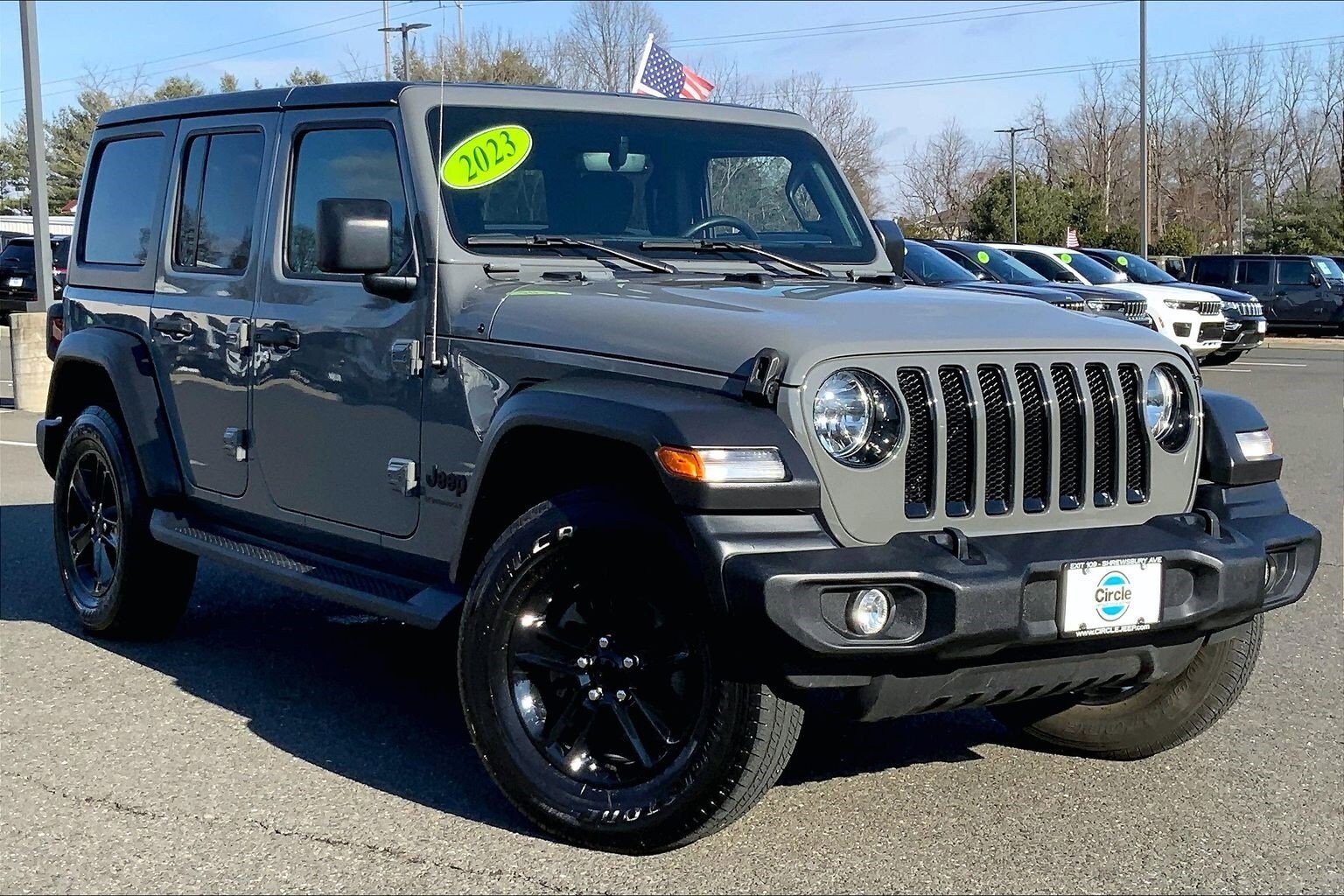 Sting-Gray Clearcoat 2023 Jeep Wrangler Sport Altitude 4WD 8-Speed Automatic 3.6L V6 24V VVT. Odometer is 4489 miles below market average! Circle CDJR is dedicated to excellence in all phases of the Chrysler, Dodge, Jeep, Ram ownership experience: Sales, Service, Lifestyle Products & Lifetime Customer Support. Fuel economy calculations based on original manufacturer data for trim engine configuration. All vehicles are subject to prior sale. Price does not include applicable fees, tax, title, and license.